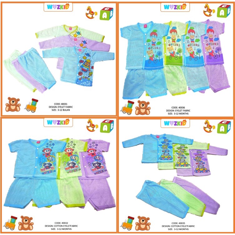 3 PSG HELAI BAJU BABY FULL LUBANG BABY EYELET SUIT INFANT EYELET SUIT 3 IN 1 SET 0 - 6 BULAN SUMMER FASHION SUIT BORONG