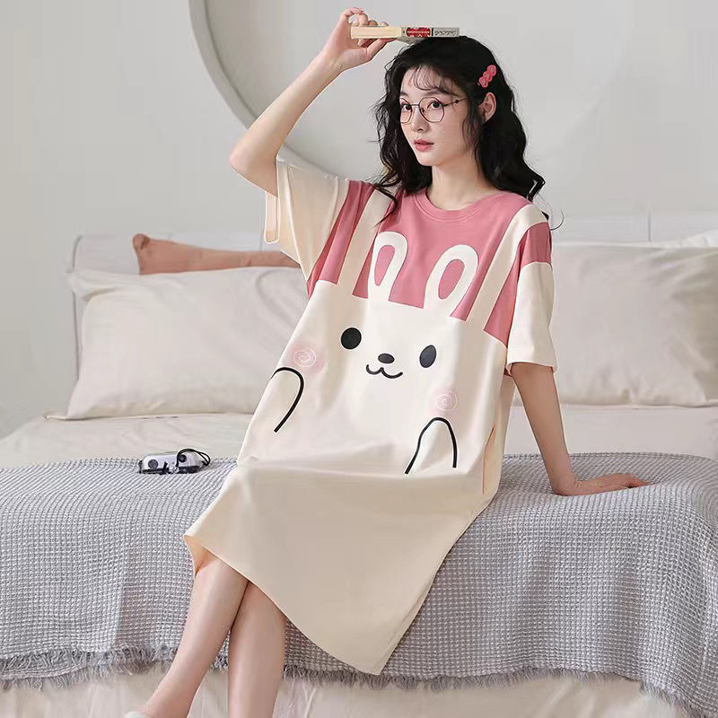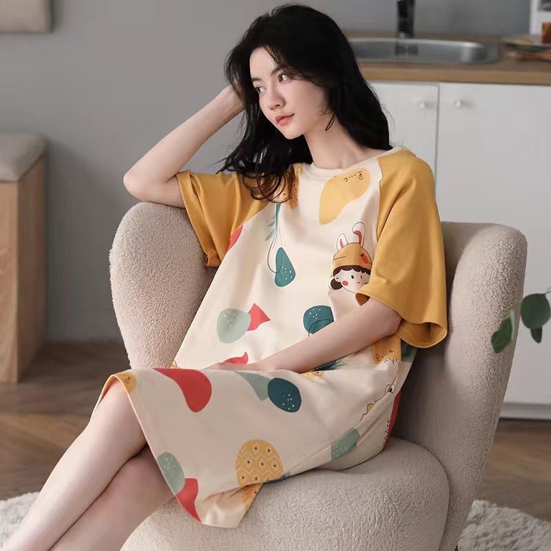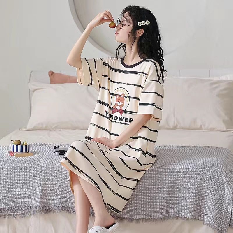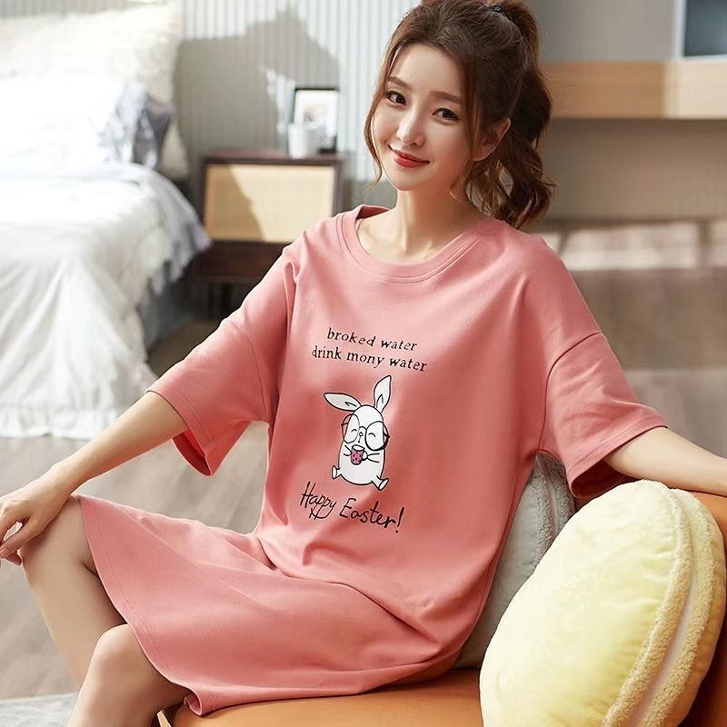 READY STOCK Pyjamas women short-sleeved nightdress plus size M-5XL baju tidur wanita Pyjamas plus size baju tidur perempuan dewasa