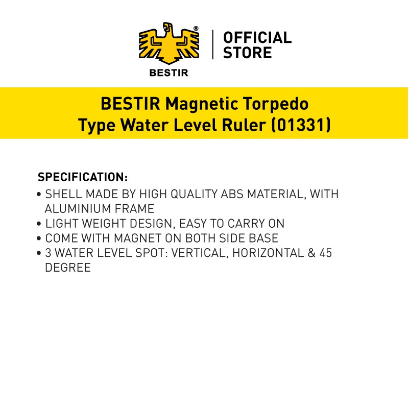 BESTIR | Magnetic Torpedo Type Water Level Ruler | Timbang Air (01331)