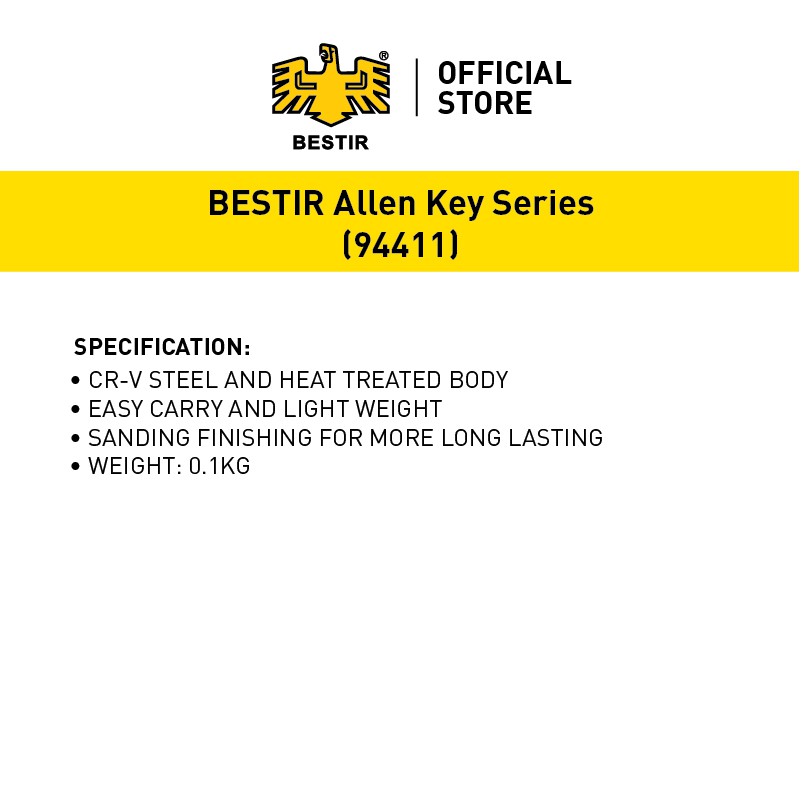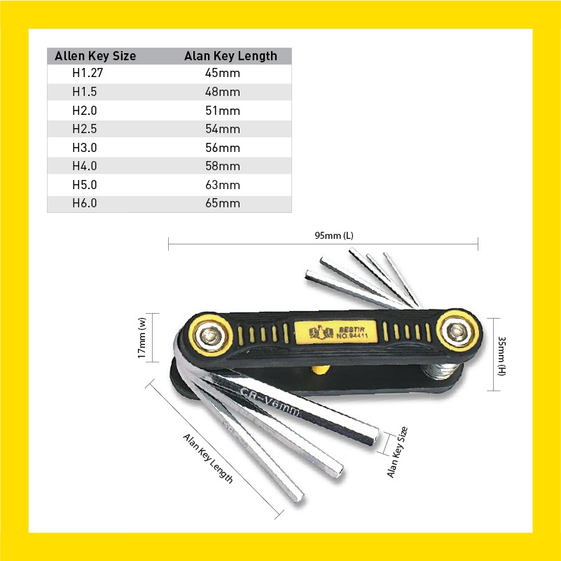 BESTIR | 8pcs Foldable Hexagon Allen Key Set | Kunci Allen Hexagonal Boleh Lipat (94411)