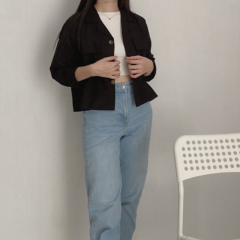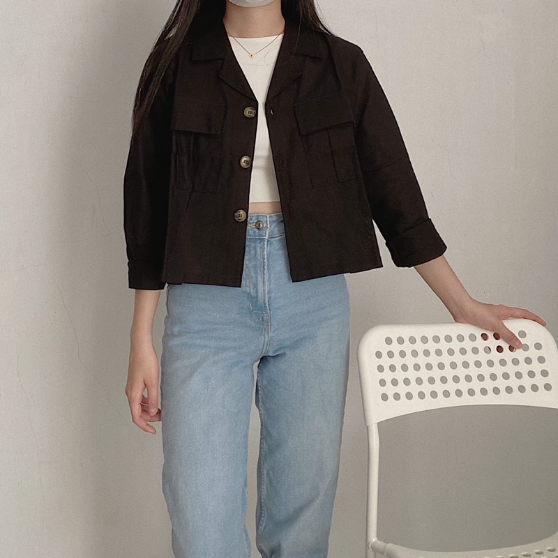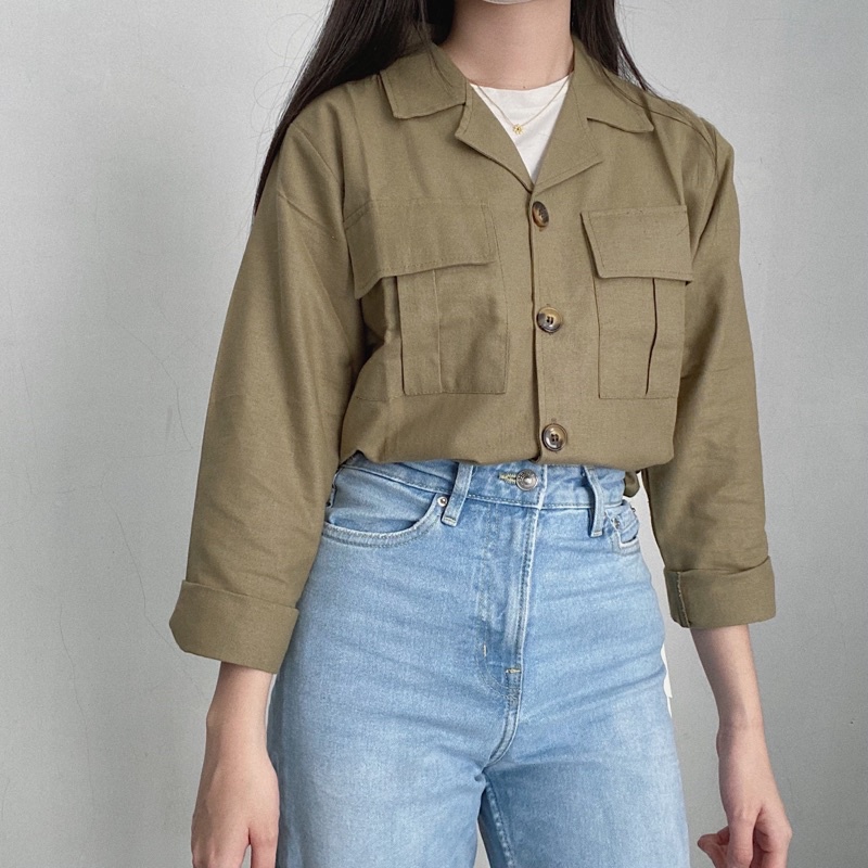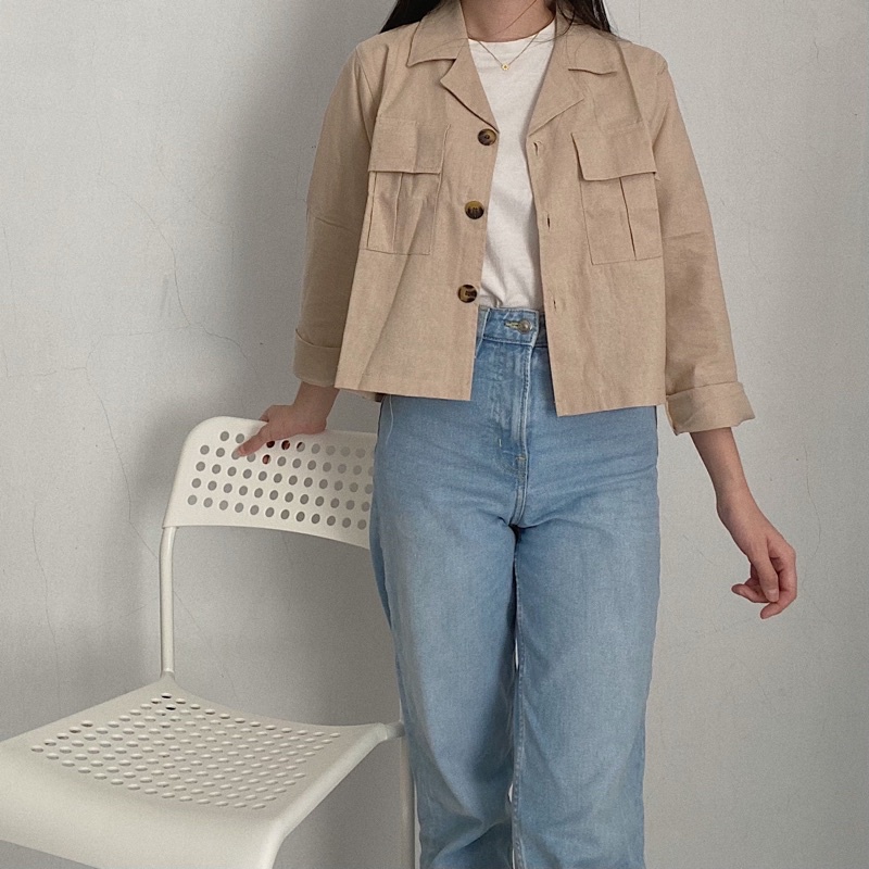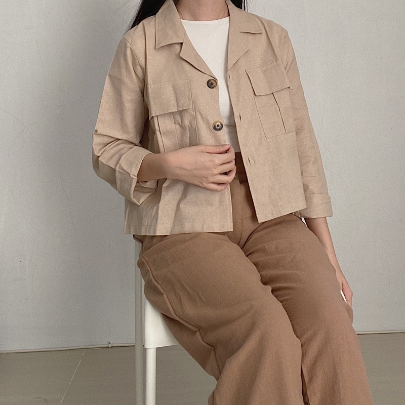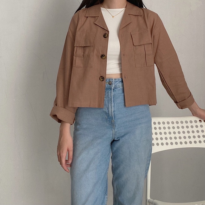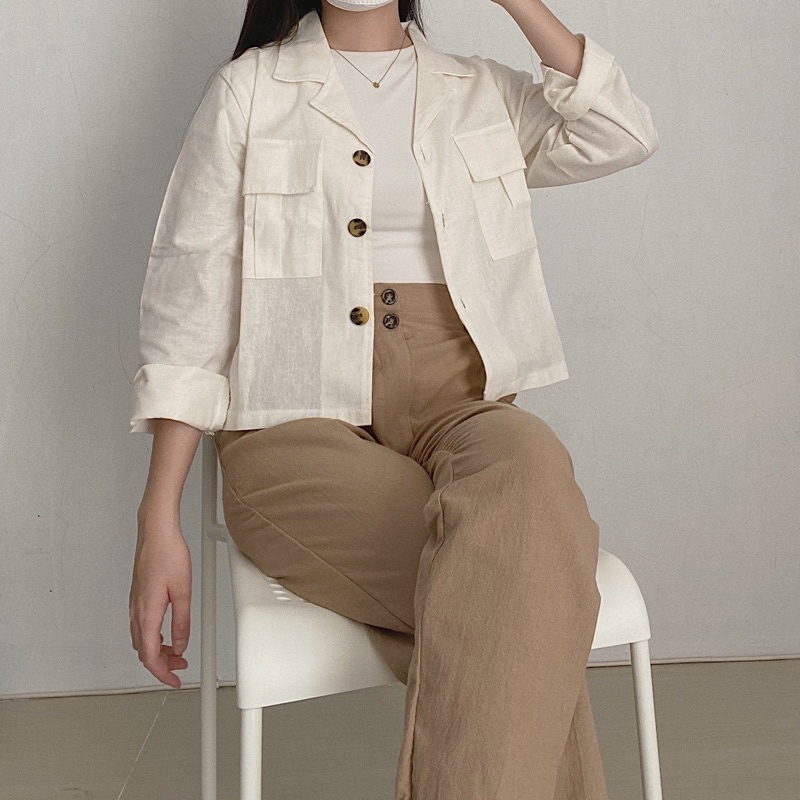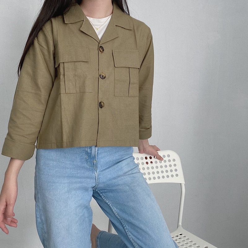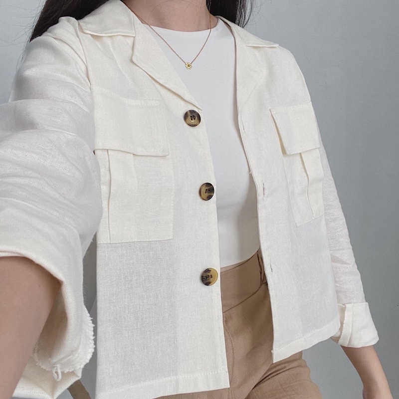 KEMEJA SIVALI Claryn Outer Linen Crop Version - Linen Shirt - Women's Top | Pocket Cardigan 2289
