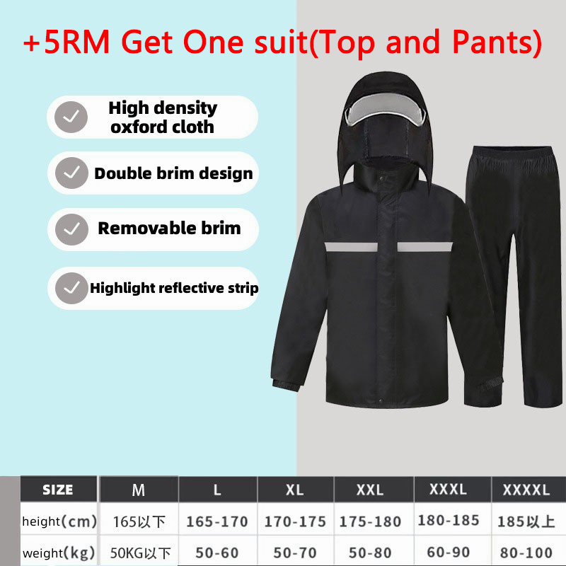 Breathable Reflective Hooded Raincoat Waterproof Thick Jacket and Pants Split Set For Hiking Travel Outdoor Bicycle