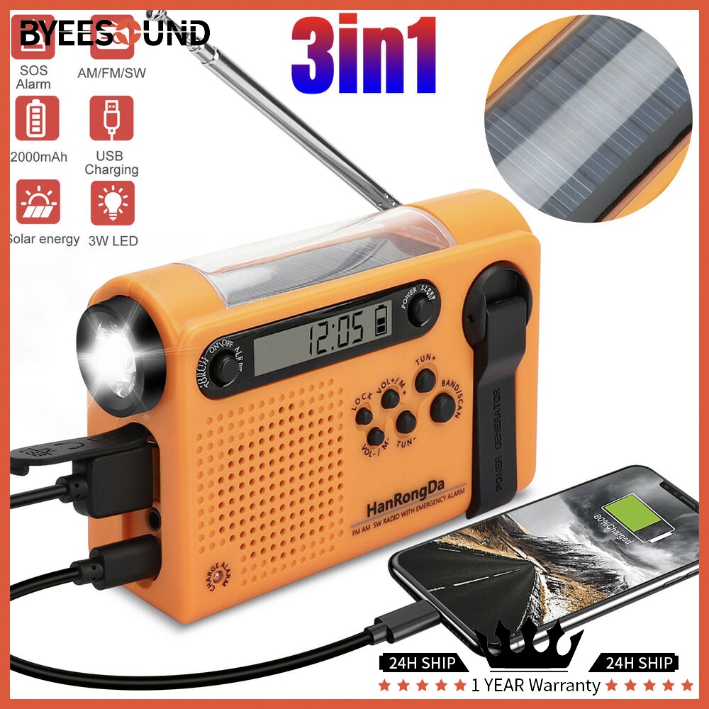 Weather Radio Solar Hand Crank 2000mAh AM FM Radio Flashlight Phone Charger Portable