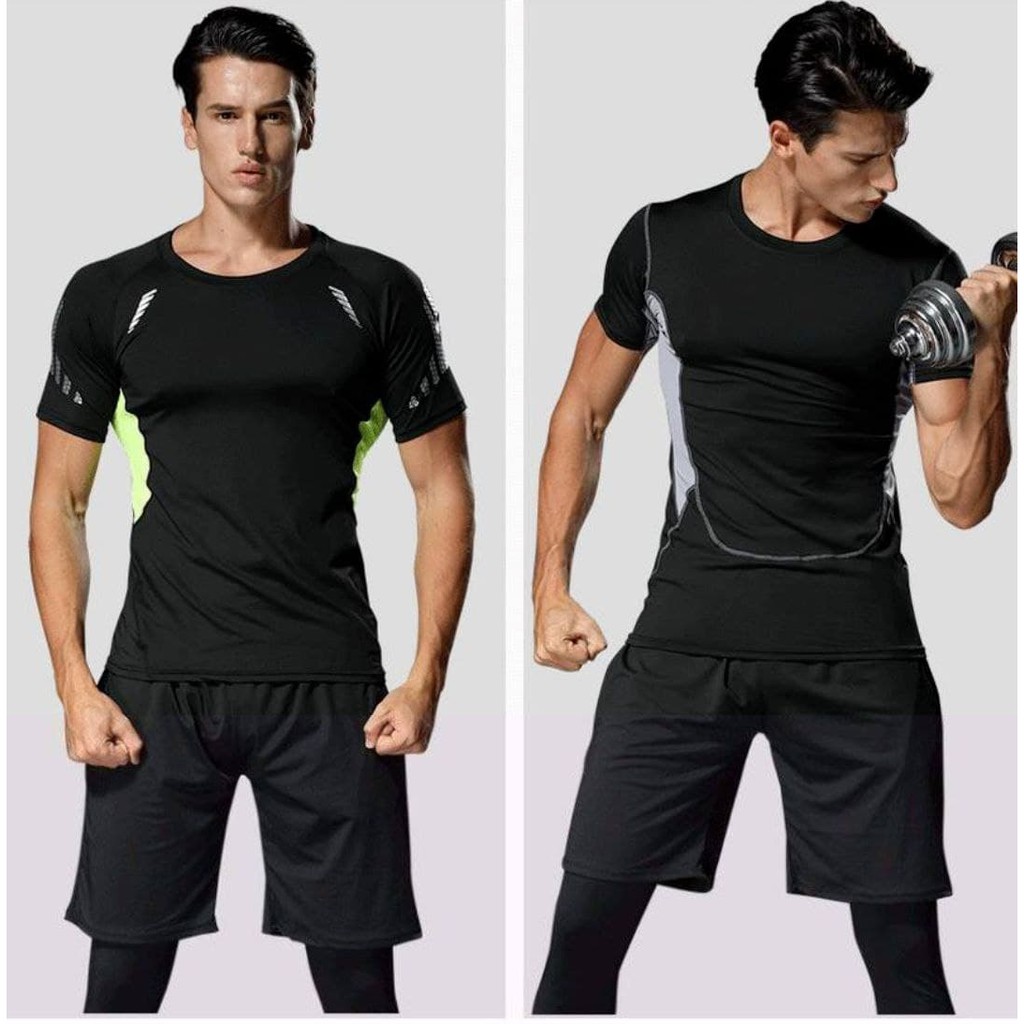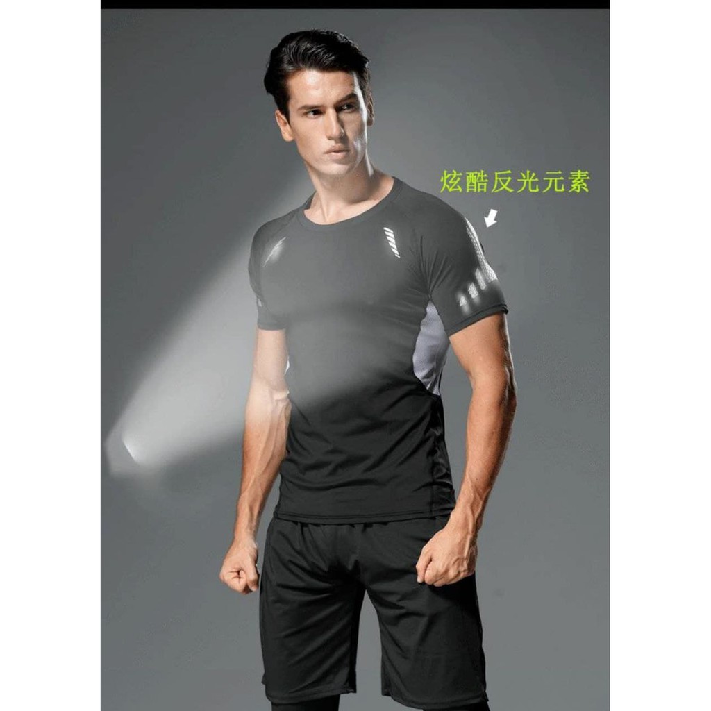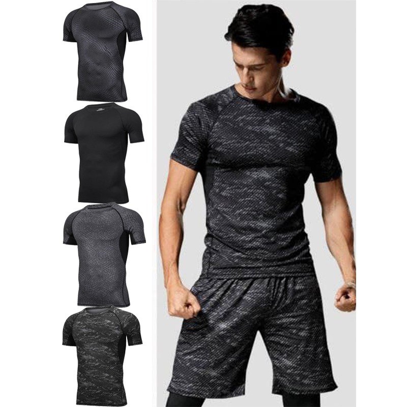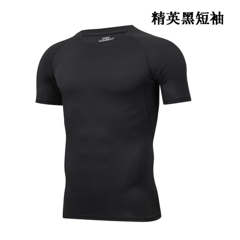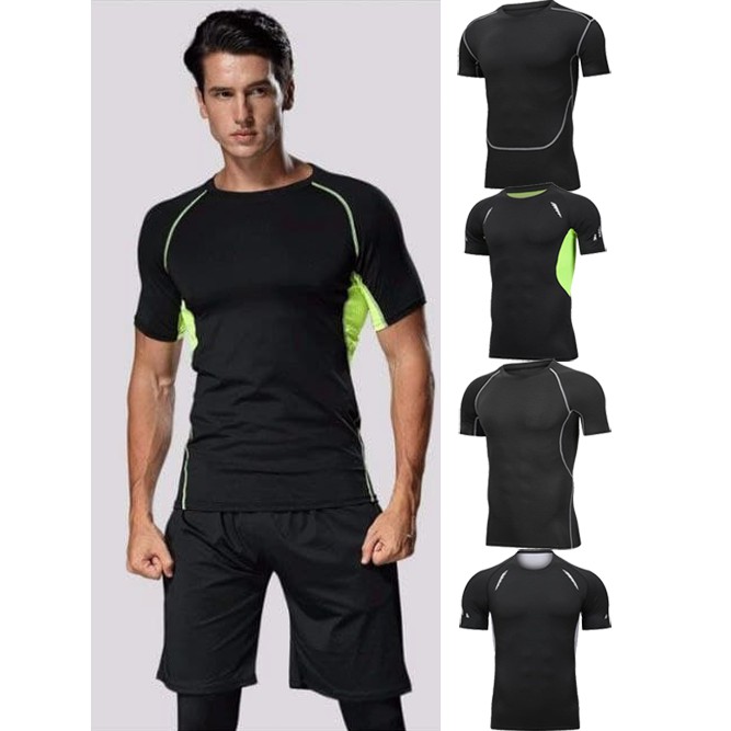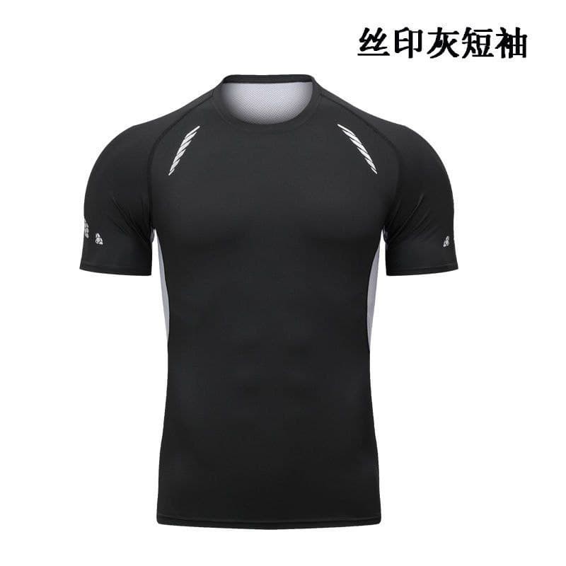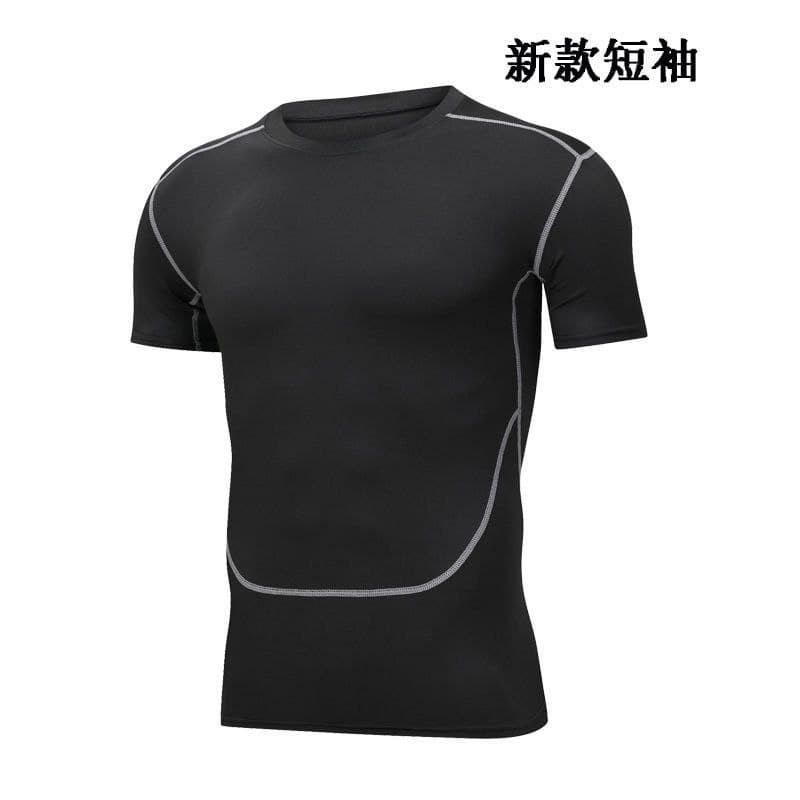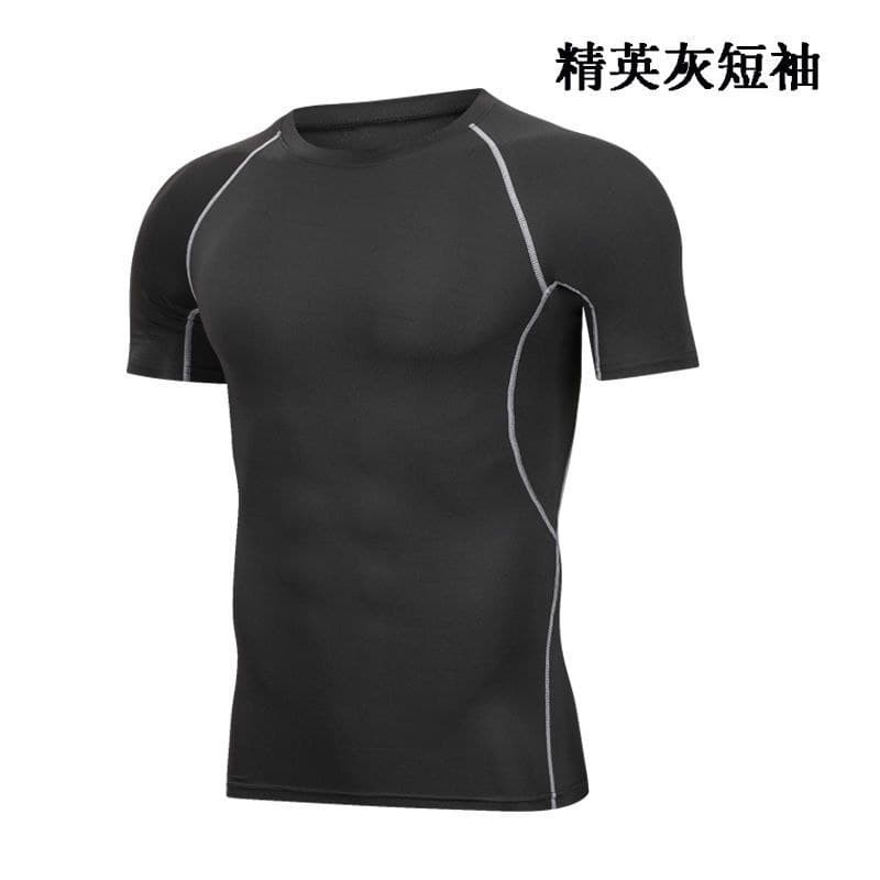 men sport short sleeve gym fitness running tight breathable compression quick-dry shirt baju tight sukan lelaki 男健身运动紧身衣