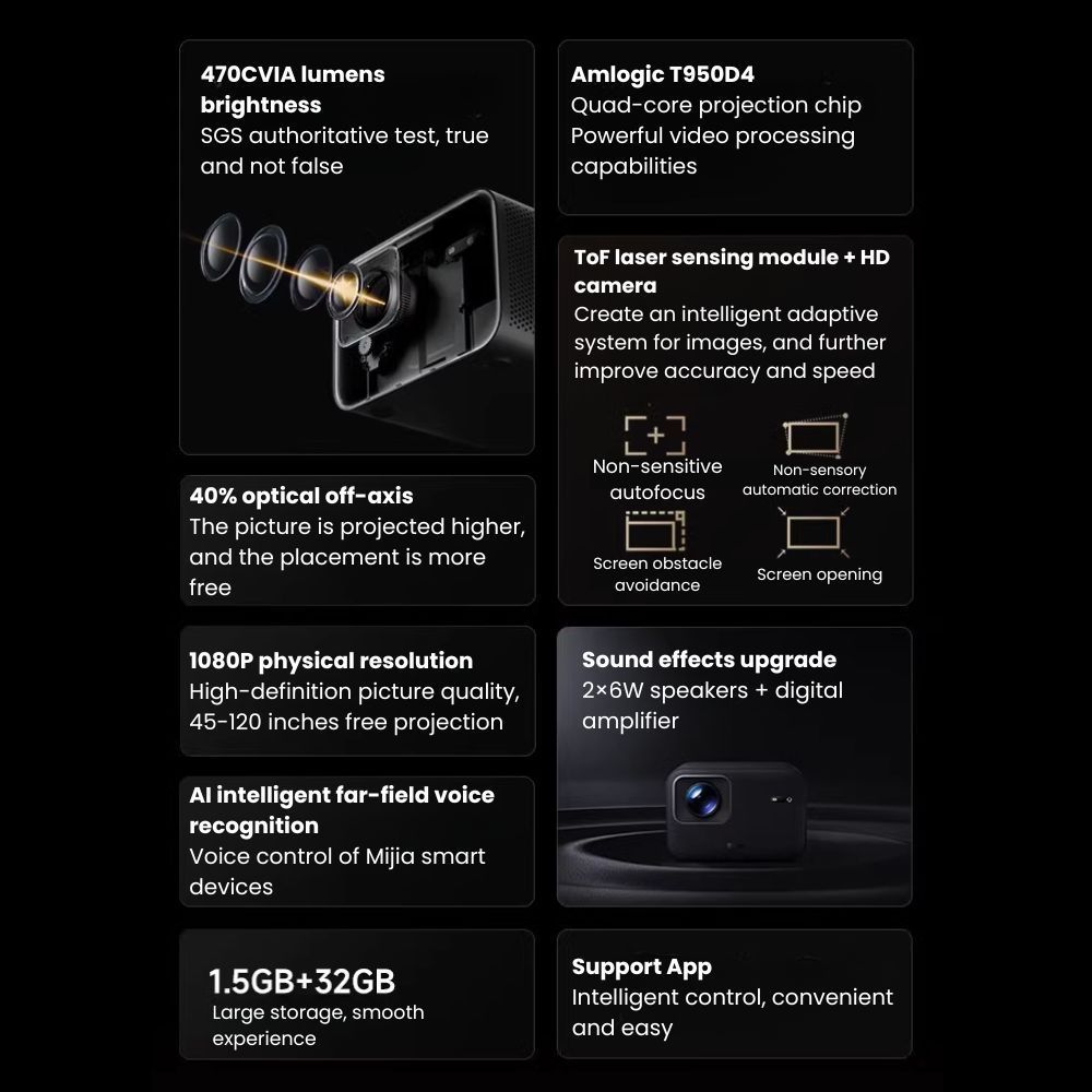 Xiaomi Redmi Projector 3 Pro Full HD 470CVIA Lumens Brightness Hight Res Sound Office ToF 120 inch Screen SGS Certified