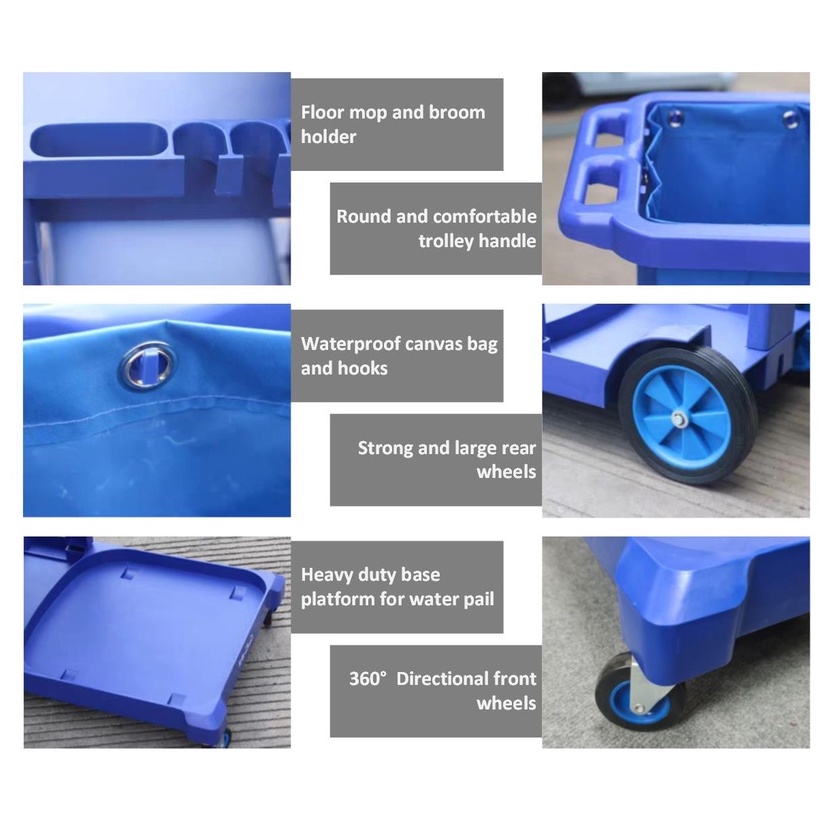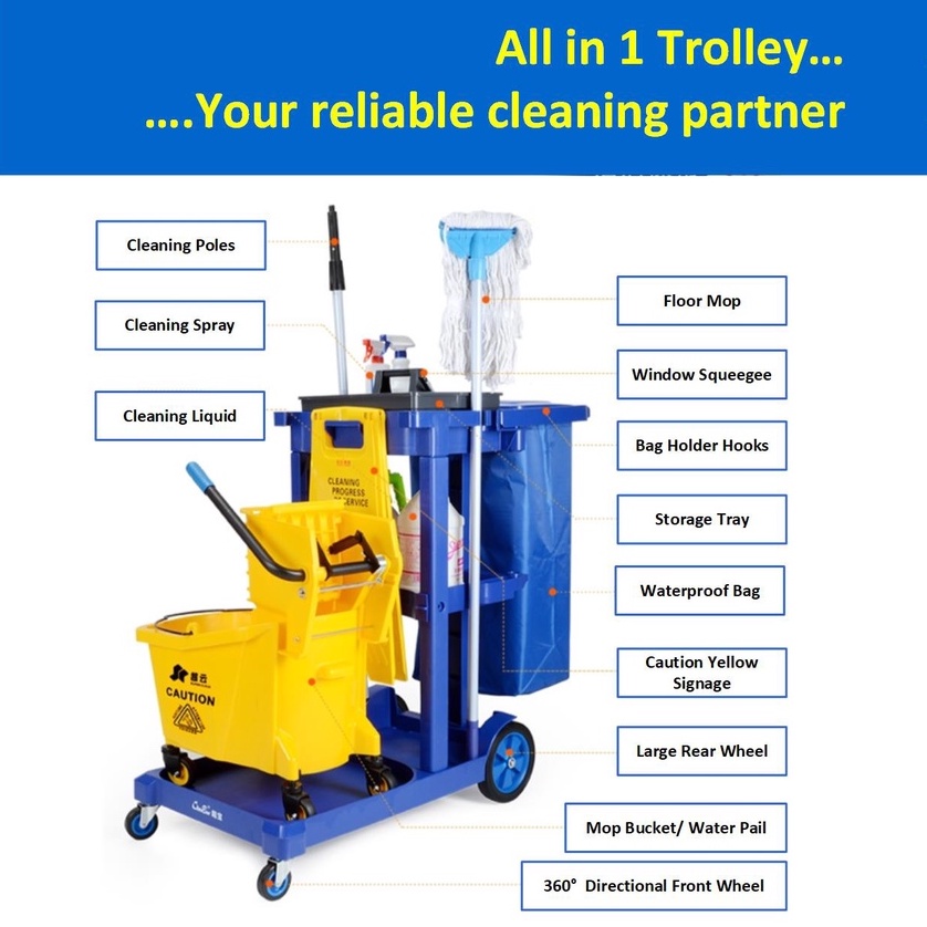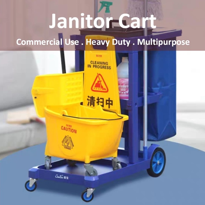 Commercial Use Heavy Duty Janitor Cart/ Multipurpose Cleaning Trolley/ All in 1 Cleaning Trolley