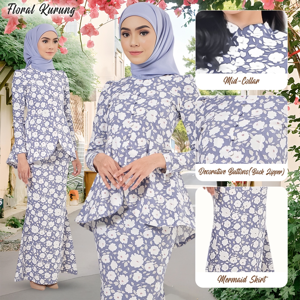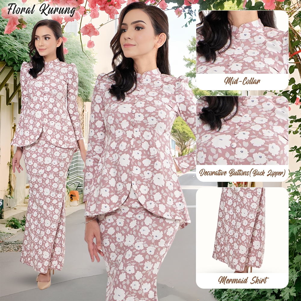 Sarah Kurung Floral Baju Kurung Moden Baju Raya 2026 Polyester Cotton Mini Kurung Moden Perempuan Muslim Baju Green Tea