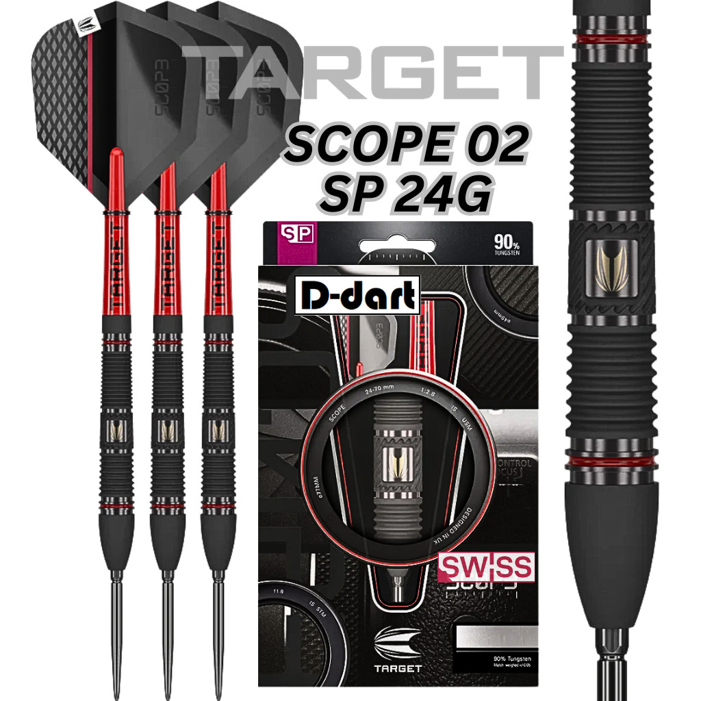 TARGET STEEL TIP DARTS - 24G SCOPE 02 (SWISS) SP 90% TUNGSTEN DART SET ORIGINAL STEEL DART