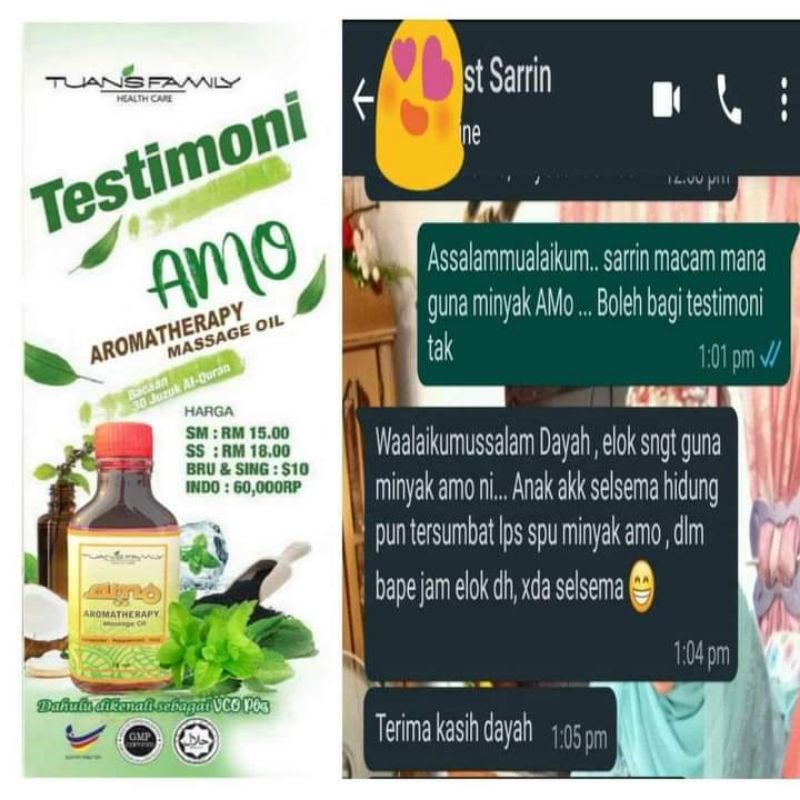 MINYAK AMO MINYAK URUT MINYAK URAT SENDI MINYAK BAYI MINYAK TELON Aromatherapy Massage Oil(AMO)