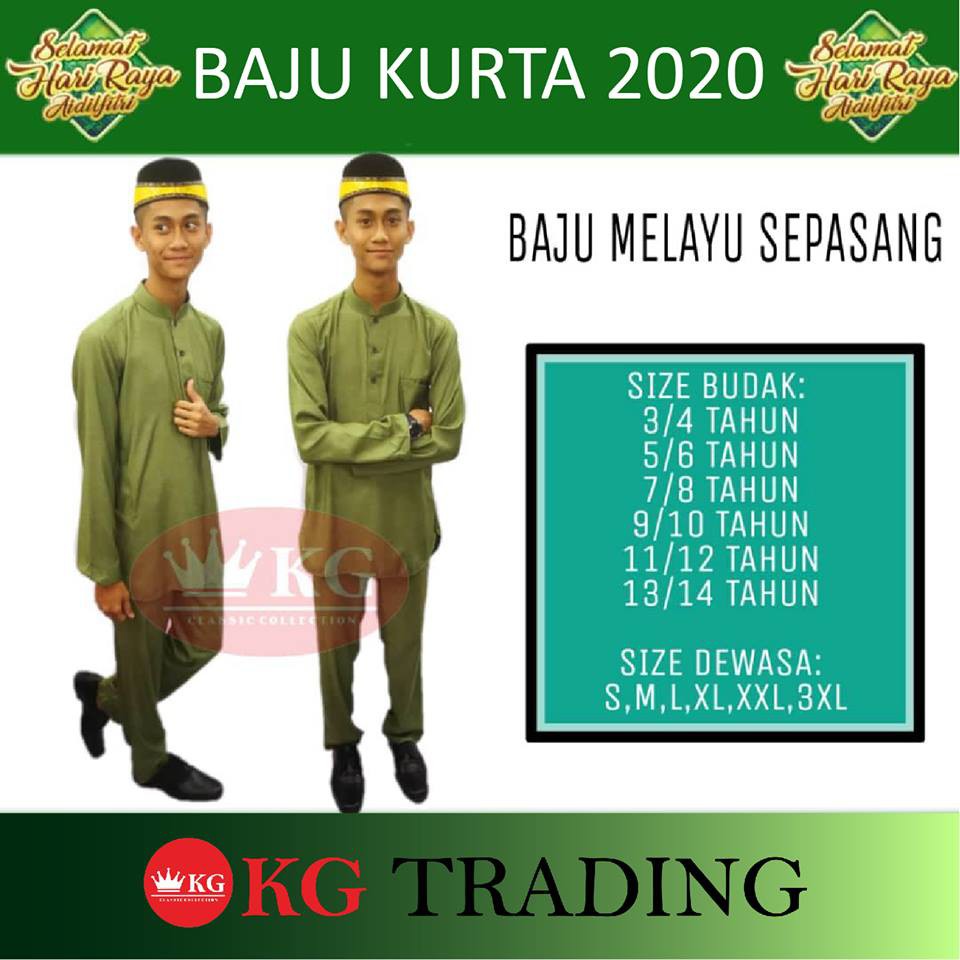 BAJU MELAYU RAYA 2021 WARNA OLIVE GREEN SEPASANG SIZE BUDAK-DEWASA VENTINO
