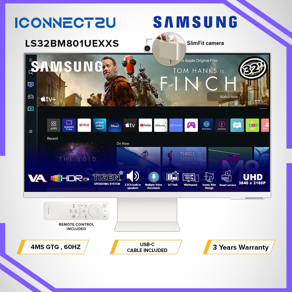 Samsung 32" LS32BM801UEXXS 4K 60Hz 4ms UHD HDR10+ Slim Fit Camera IoT Hub Airplay Type C Ultrawide M8 Smart Monitor