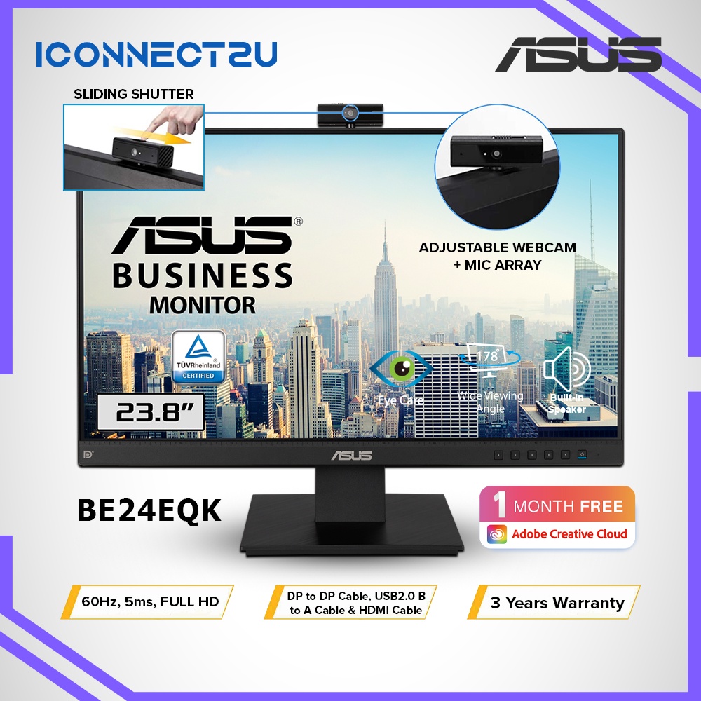 Asus 23.8" BE24EQK FHD IPS 60Hz 2MP Buildin Camera Microphone Array Build In Speaker Video Conferencing Monitor