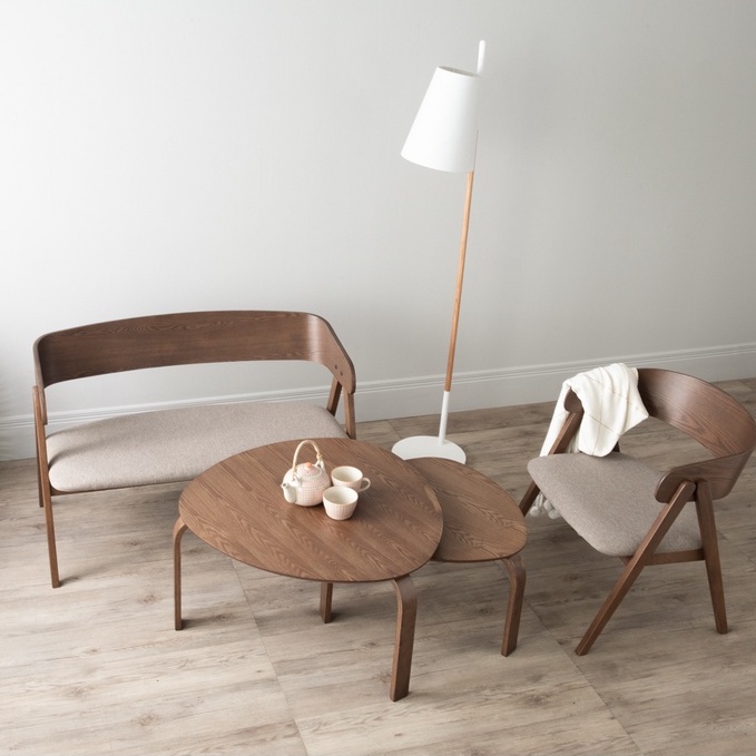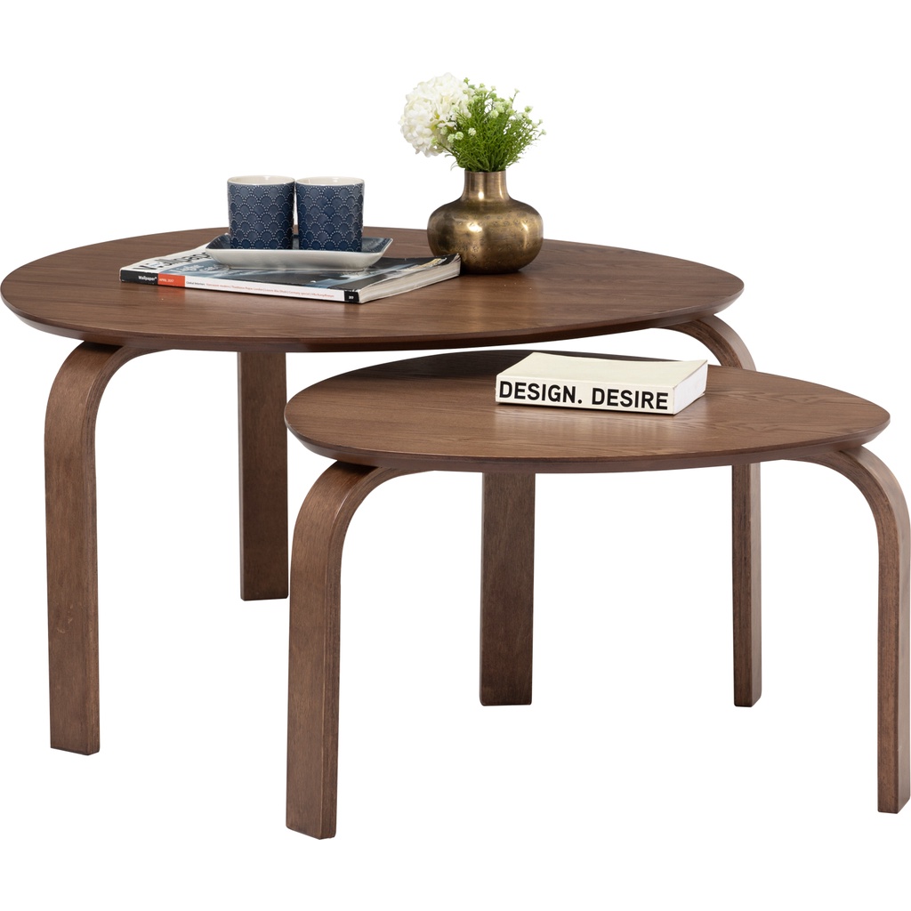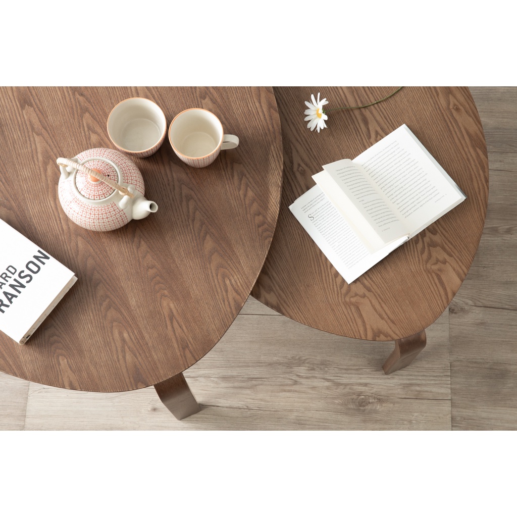 HAVASTA Set of 2 Round Nested Coffee Table / Occasional Table Set / Small Table Set in Natural and Walnut Color