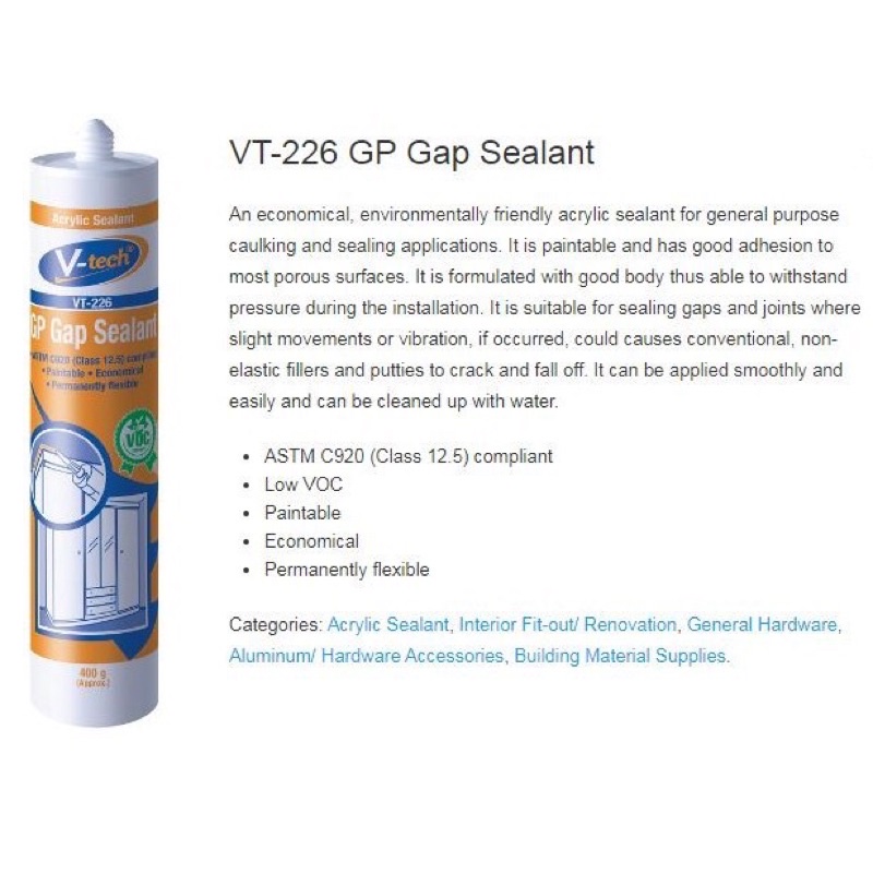 VT-226 V-Tech GP Gap Sealant(Paintable)#450GM