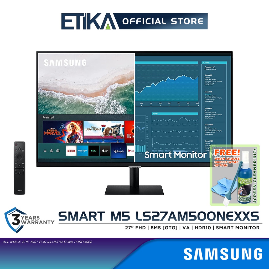 Samsung Smart M5 LS27AM500NEXXS | 27" VA FHD Smart Monitor | Wireless Lan and Bluetooth