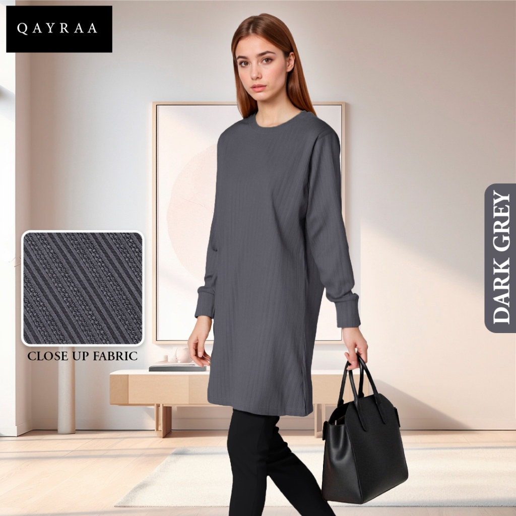 QAYRAA Cotton Knitted Muslimah Blouse Ironless/PREMIUM Muslimah Plain/Baju Sukan Size: M-4XL /Dark Purple/BLACK