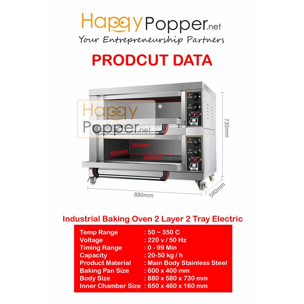 Happypopper Commercial Industrial Baking Bakery Oven Double 2 Layer 2 Tray Electric Oven Maker Heavy Duty with timer