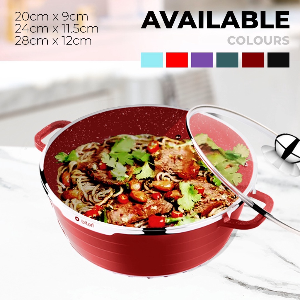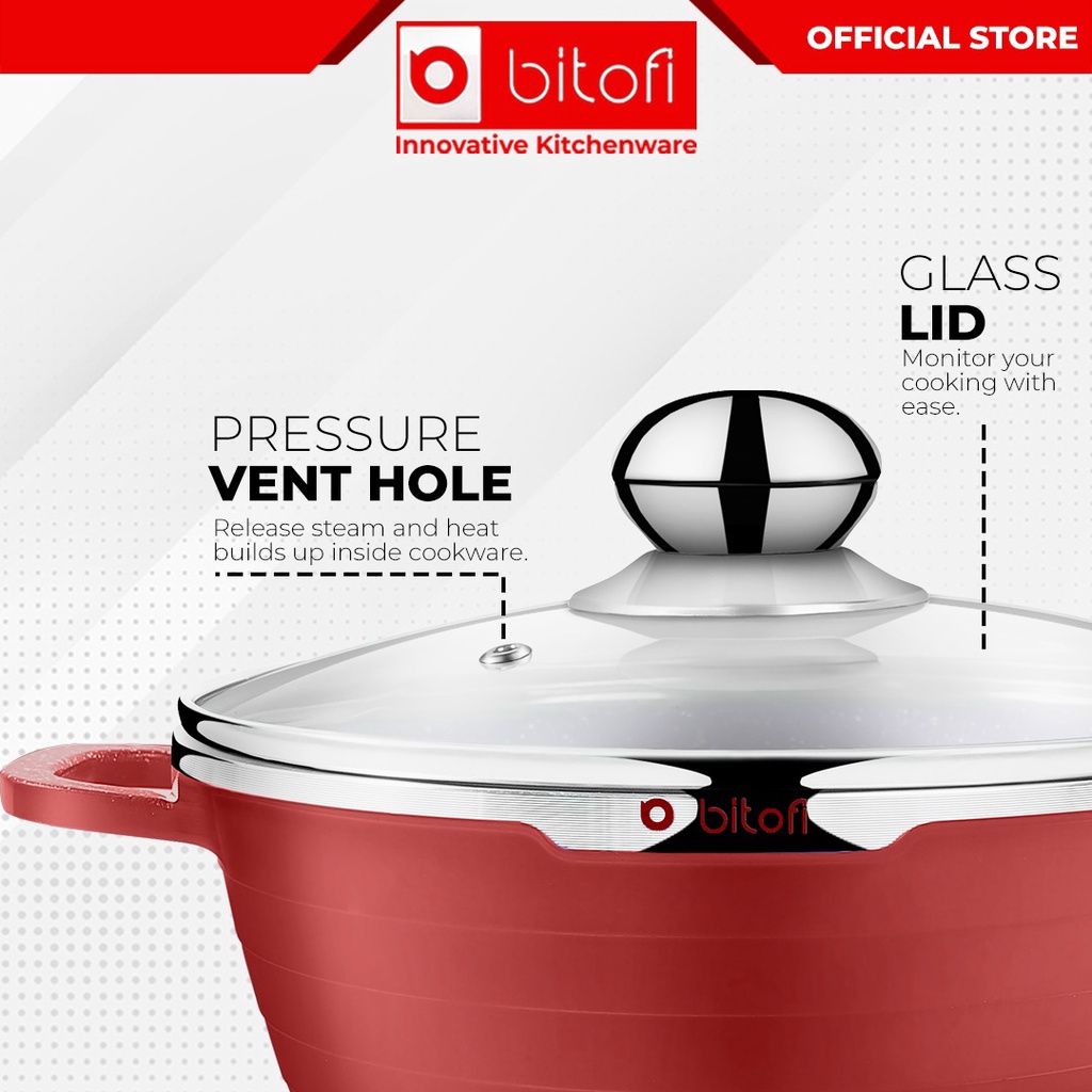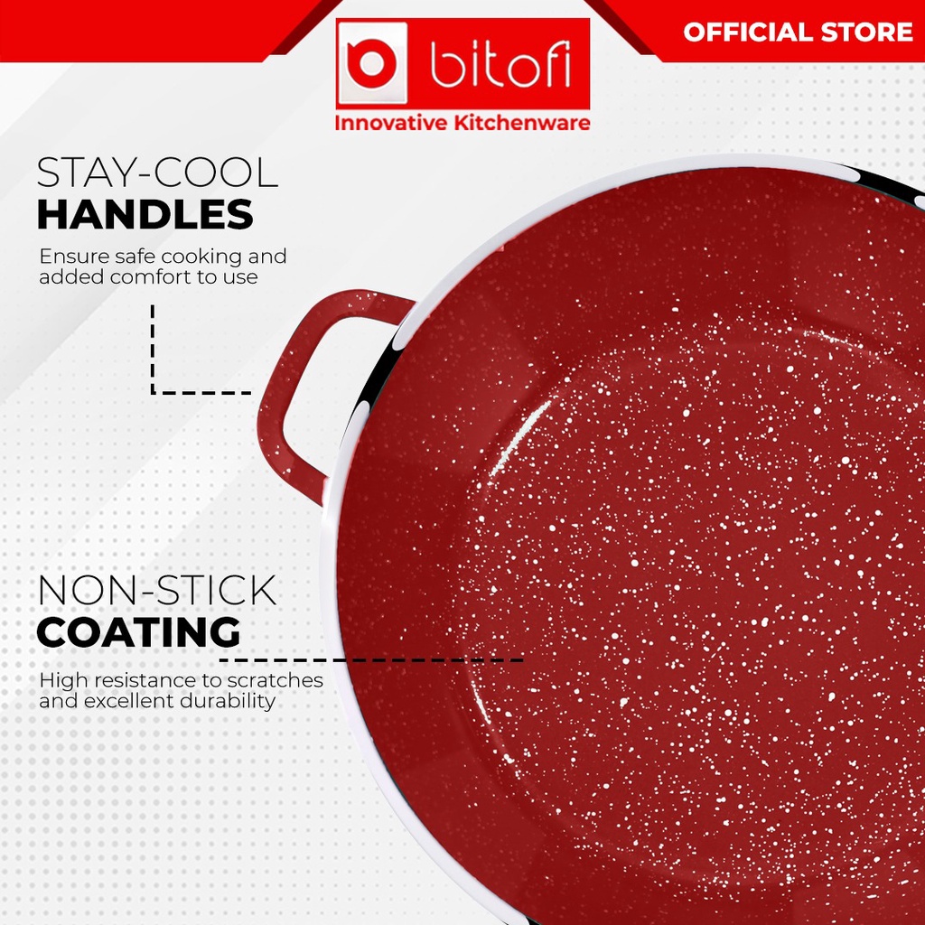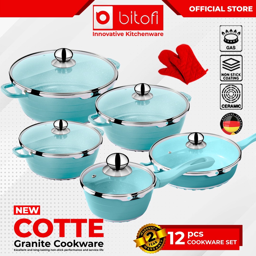 BITOFI GERMANY COTTE 12PCS Cookware Set Non Stick Granite Cooking Pot Frying Pan Set Kitchen Cookware-WINERED