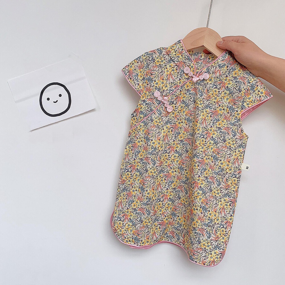 Bear Leader 2 3 4 5 6 7 8 Years Summer Flower Print Girls Cheongsam Dresses New Year Sleeveless Dress Chinese Style Qi-Pao Kids Casual Clothing Floral Cheongsam Dress