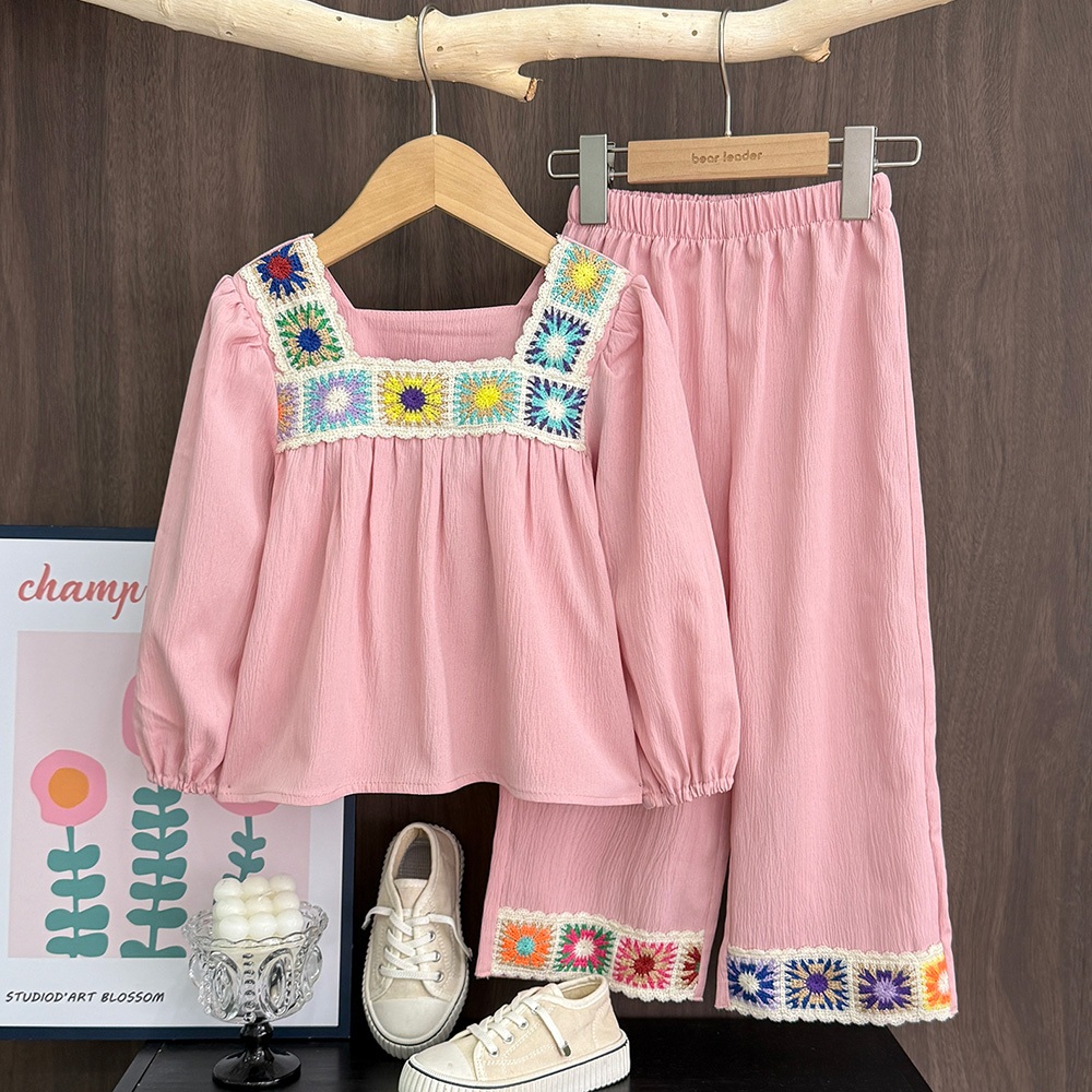 Bear Leader Fashion Flower Embroidery Lace Girls Suit Autumn New Long Sleeved Shirt and Pants 2 Pieces Sets Raya Muslim Spring Cute Kids Outfits