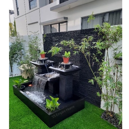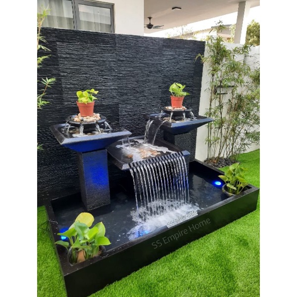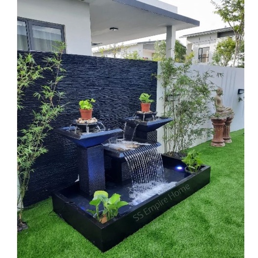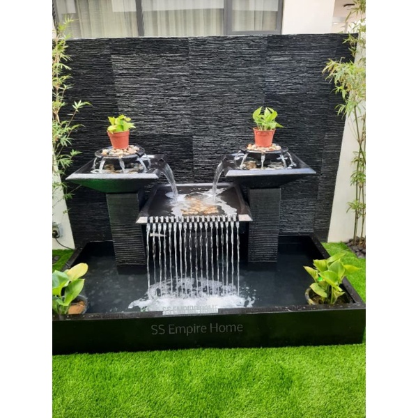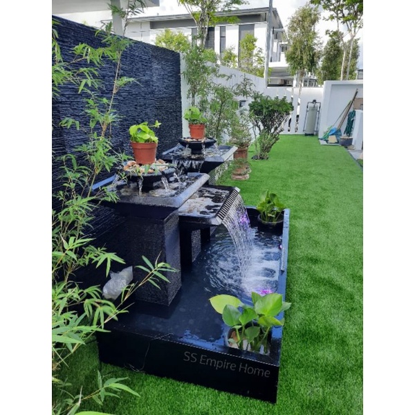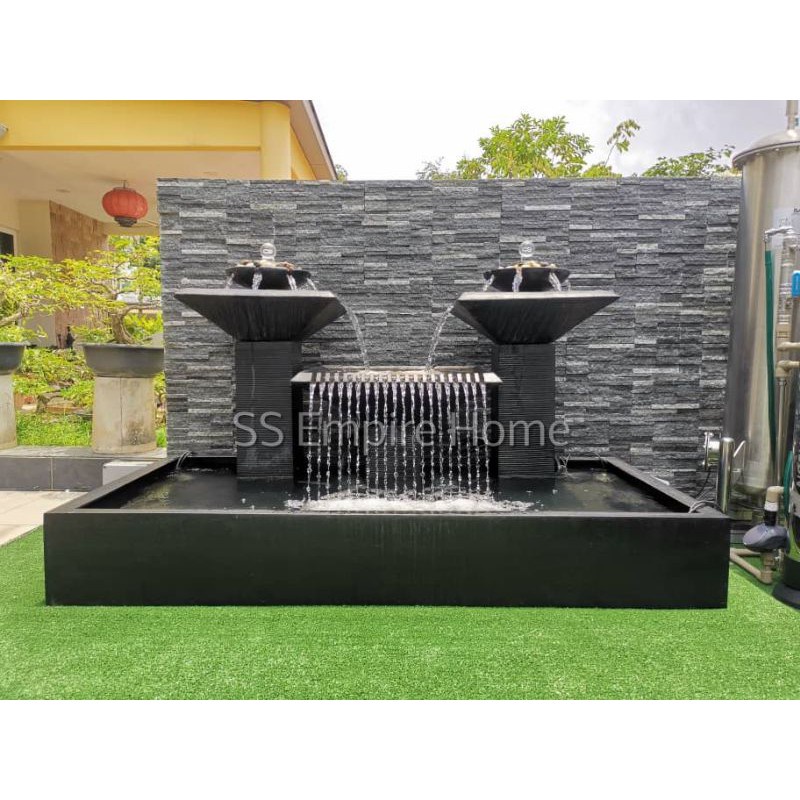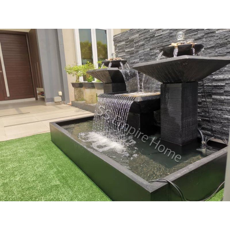 S02 Black 6x3 Feng Shui Water Pond Fountain Kolam Air Sandstone Garden Water Feature Balinese 风水流水喷泉瀑布池 Fish Waterfall