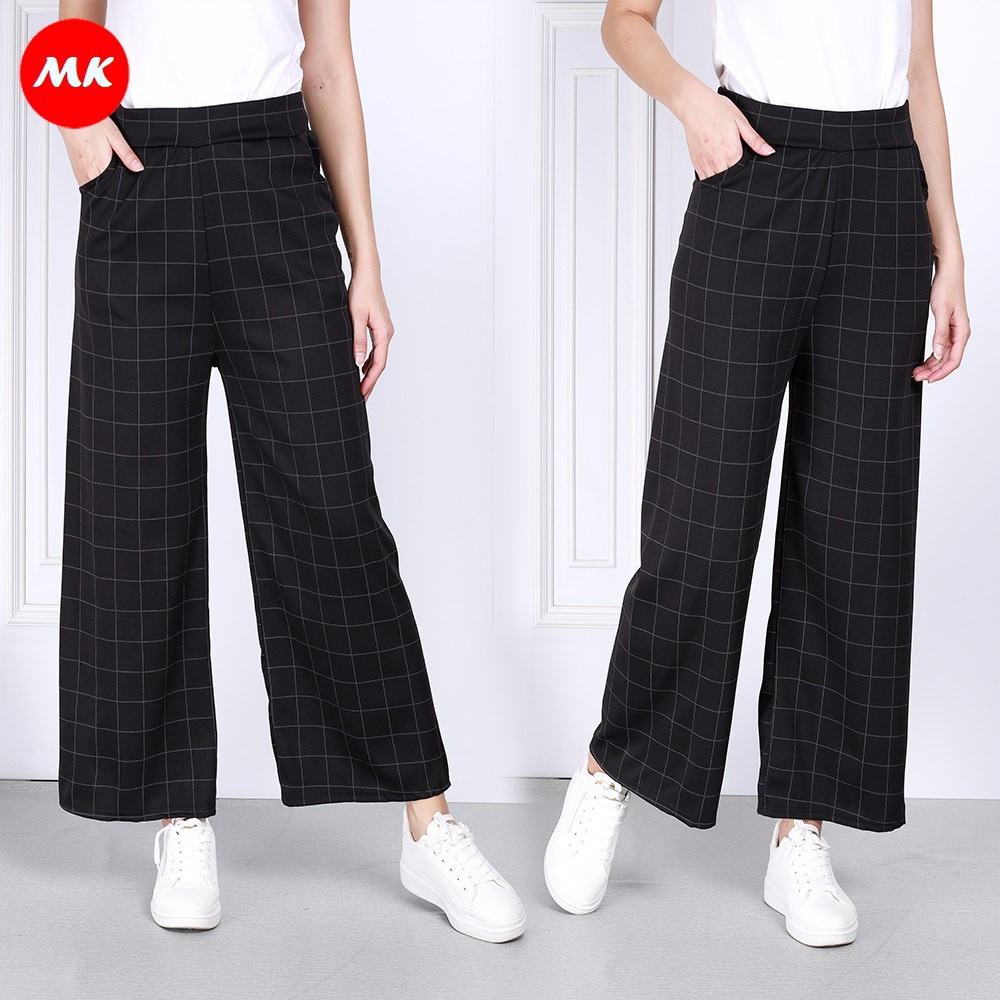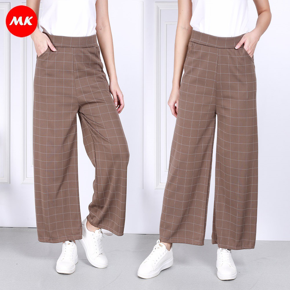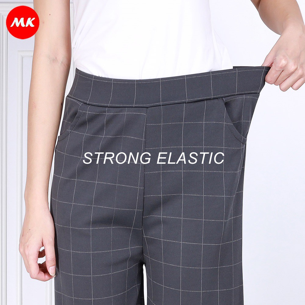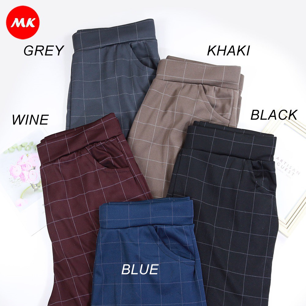 🔥Seluar Perempuan🔥 MK Straight Pants Women Checkered Side Pocket Elastic Pants Seluar Perempuan Straight Cut [P29/542]