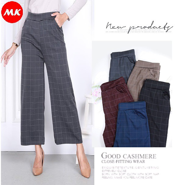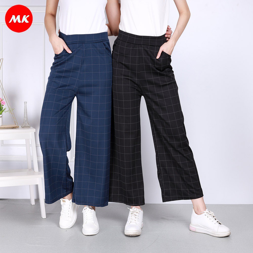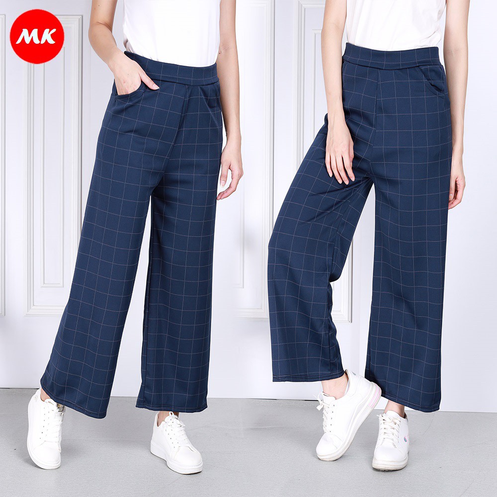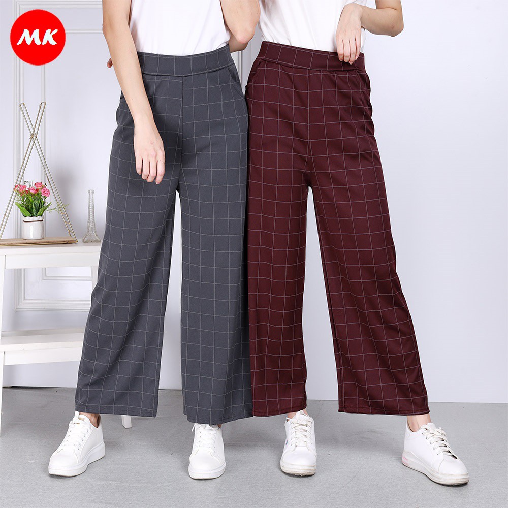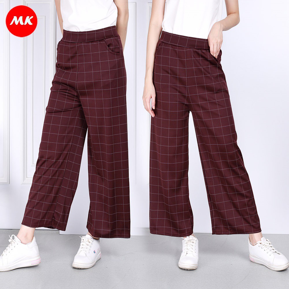 🔥Seluar Perempuan🔥 MK Straight Pants Women Checkered Side Pocket Elastic Pants Seluar Perempuan Straight Cut [P29/542]