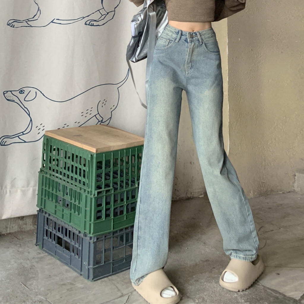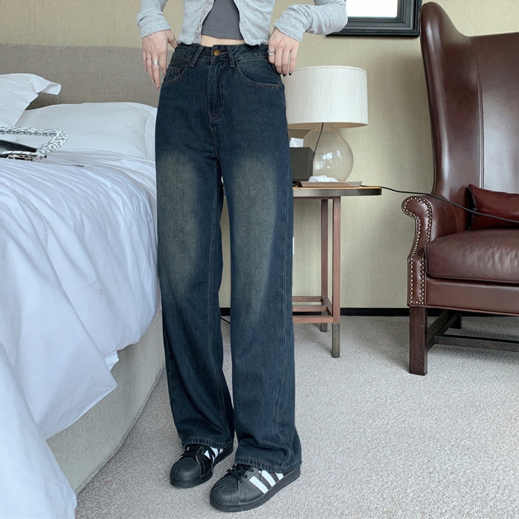 Retro Straight Jeans Women Loose Thin Celana Jeans Wanita High Waisted Wide Leg Denim Pants Baggy Jeans