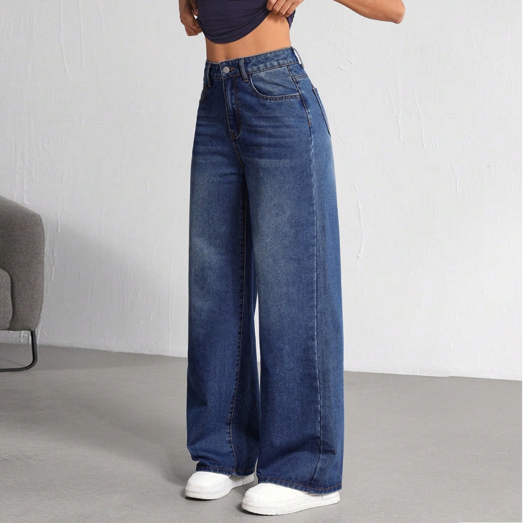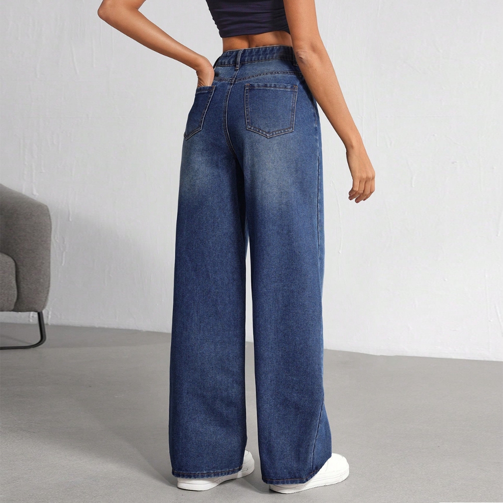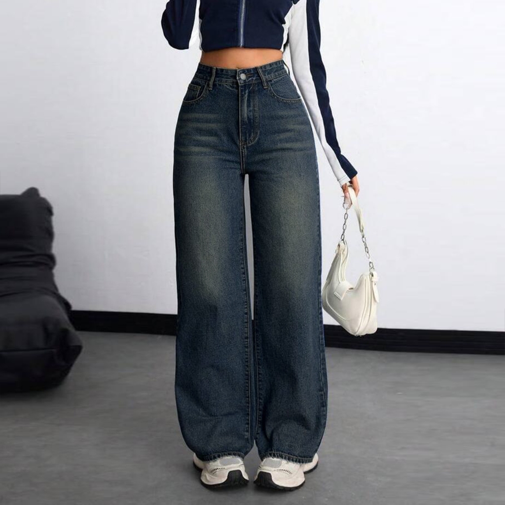 Seluar Jeans Wanita High Waist Korean Style Terbaru Wide Leg Loose Jeans Denim Pants For Women