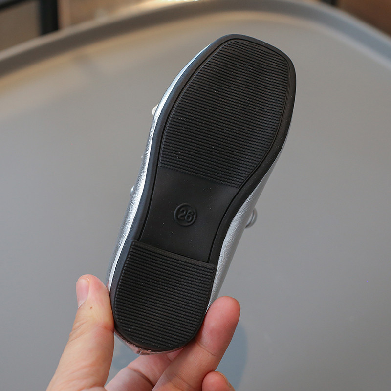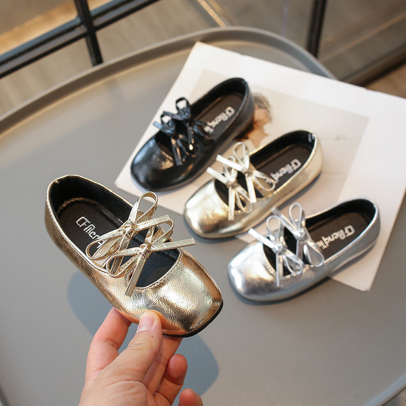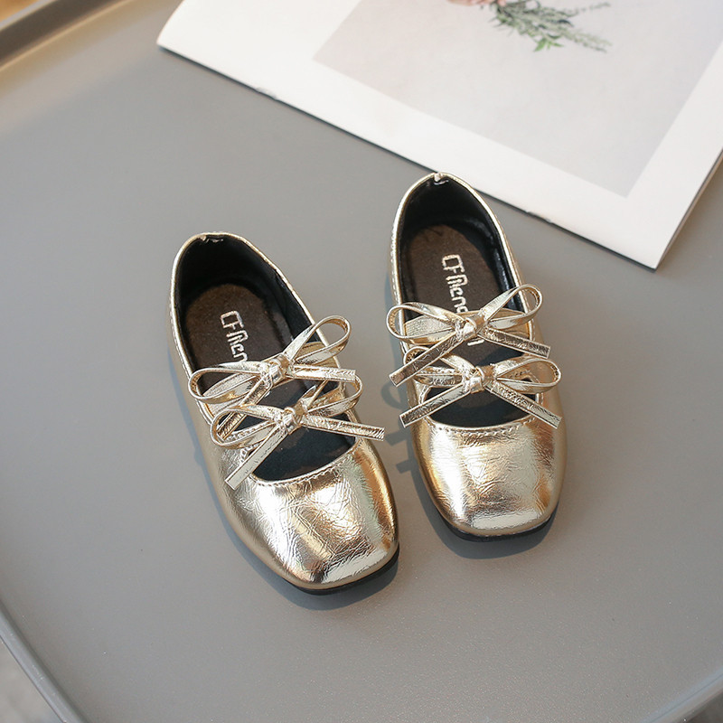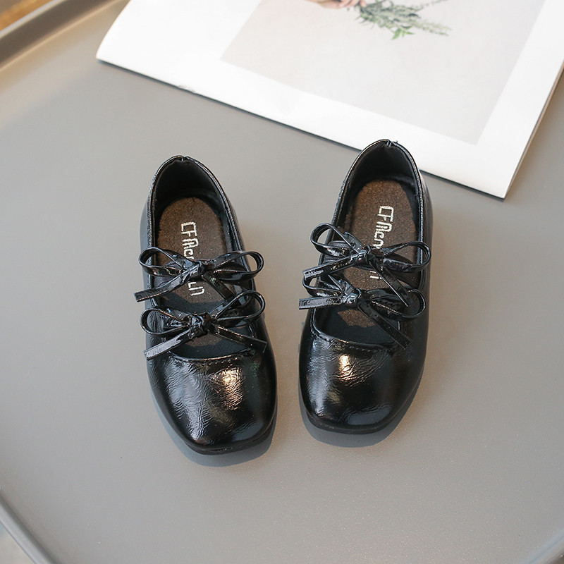 Korean Style Bowknot Baby Girls Leather Flat Shoes Simple Slip-on Square-toe Comfortable Kids Shoes 2-16 Years Old