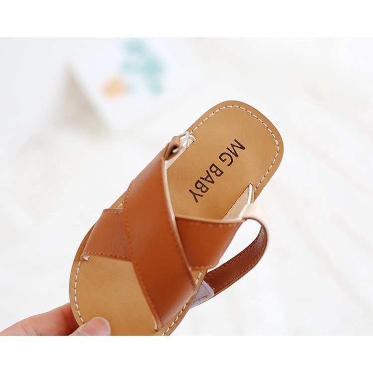 Cute Girls & Boys Cross Strap Soft Leather Sandals 2-6 Years Old Kids Open-toes Beach Shoes