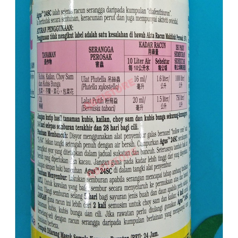AGUS 24SC (500ml) / Menghapus ulat plutella untuk kubis, kailan, choy sam & kubis bunga / Kawal Lalat Putih untuk Cili