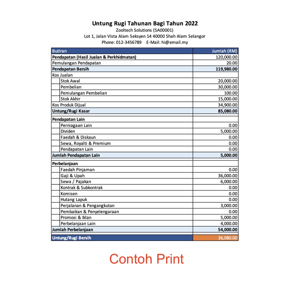 Template Penyata Untung Rugi & Kunci Kira-kira Excel