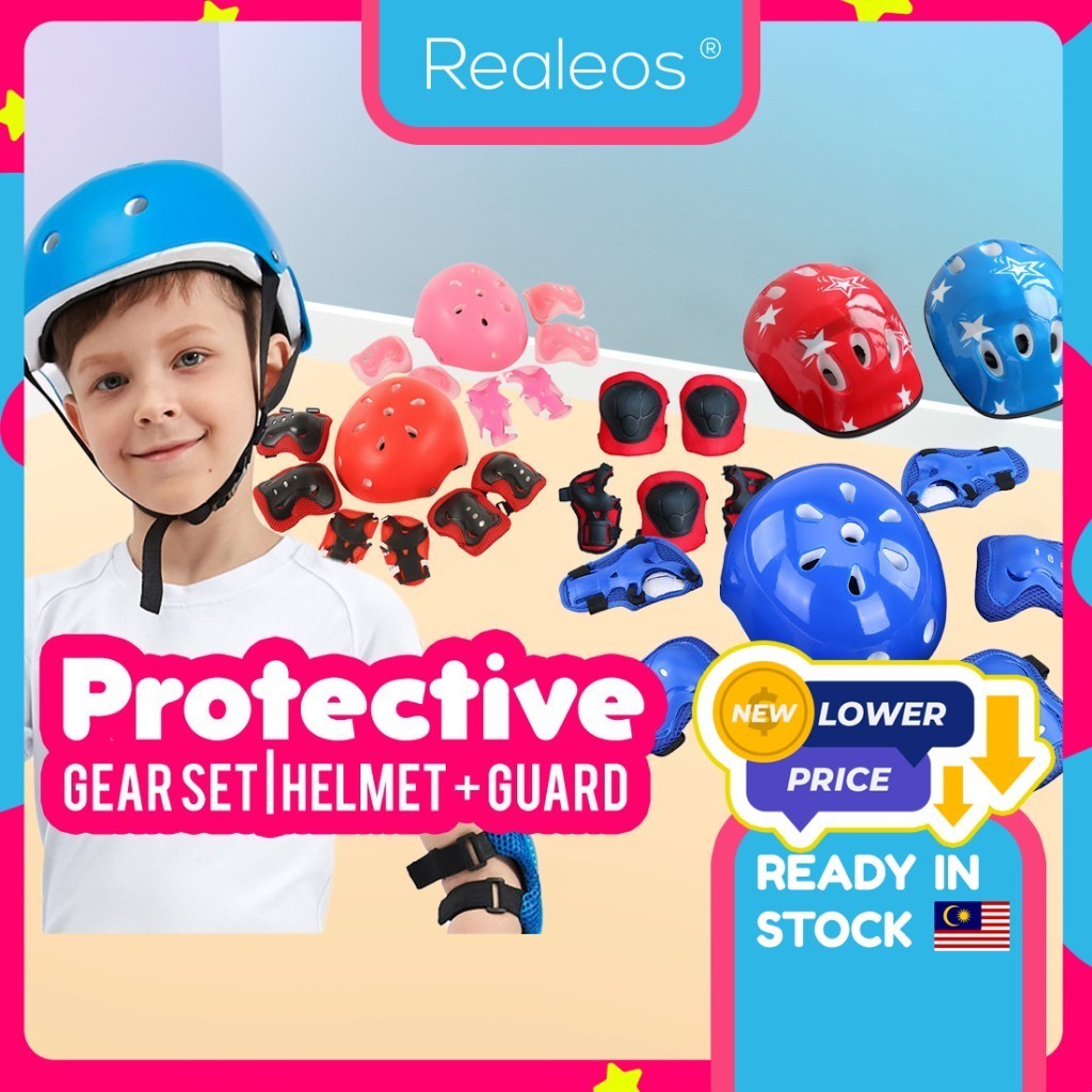 Realeos Kids Inline Skate Cycling Bicycle Bike Protective Gear Knee Pad Roller Boy Girl Safety Guard Helmet Set - R452