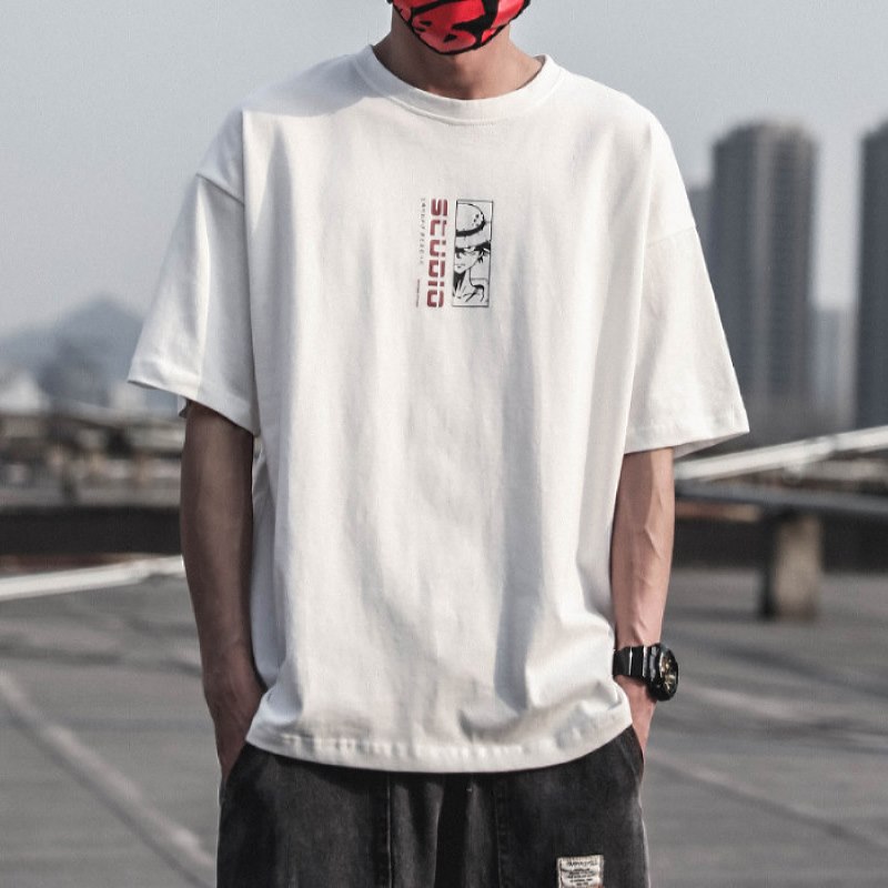 One Piece Luffy Printed Baju T shirt Lelaki Murah Oversized Tshirt Men's Graphic Tees Plus Size Anime Printing Clothing Hip Hop Style Trend Streetwear Korean Fashion Clothes Lengan Pendek Baggy