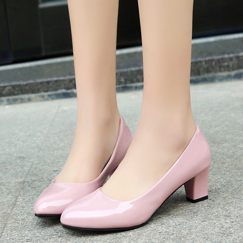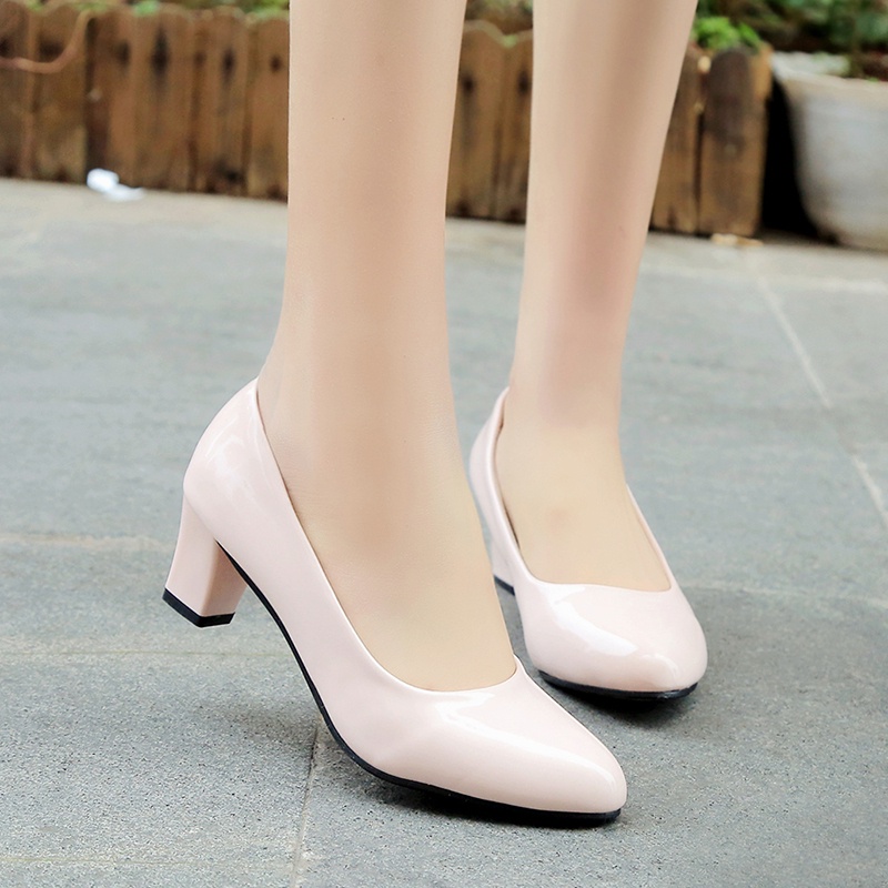 Professional Formal Wear Work Shoes Fashionable Women's Small Leather High Heels Mid-Heel Thick Heel Stewardess Etiquette