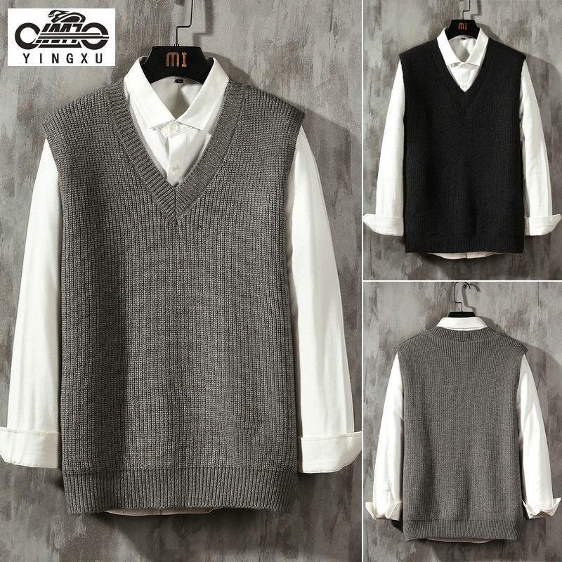 Men's spring and autumn Korean style college style trendy sweater V-neck knitted vest pullover sleeveless knitwear