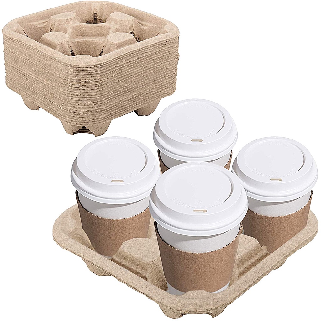 100pcs 2cup / 4cup / Disposable Pulp Paper Cup Holder/ Molded Paper Cup Tray / Pemegang Cawan / Drink Tray / 杯托