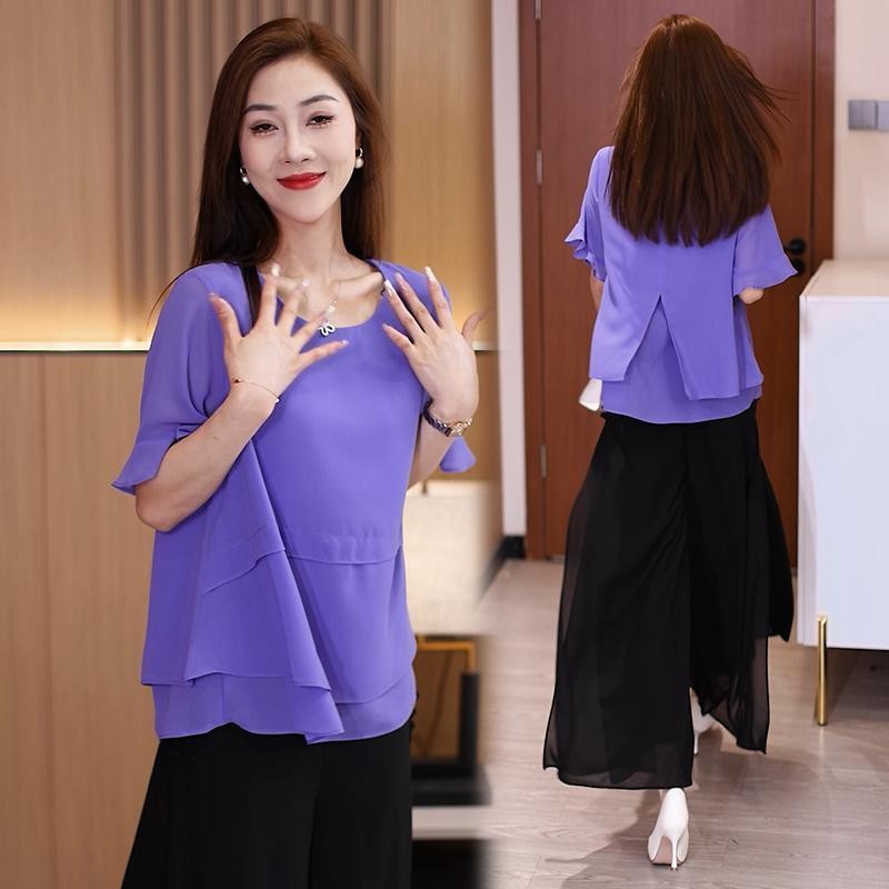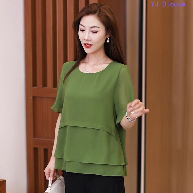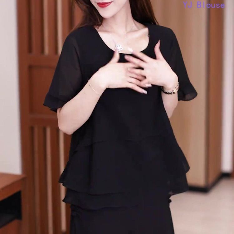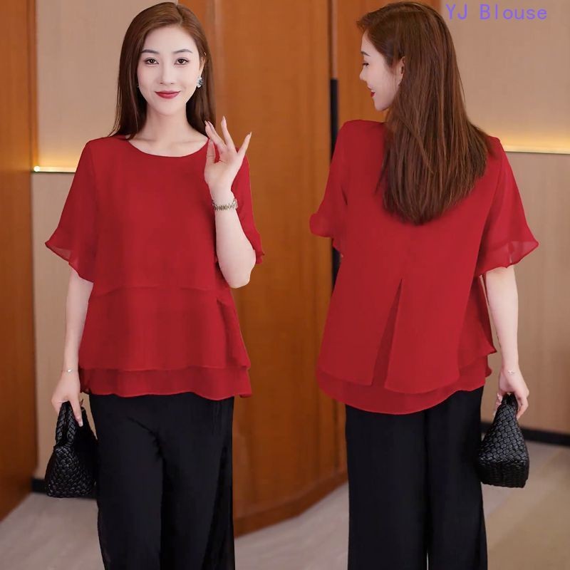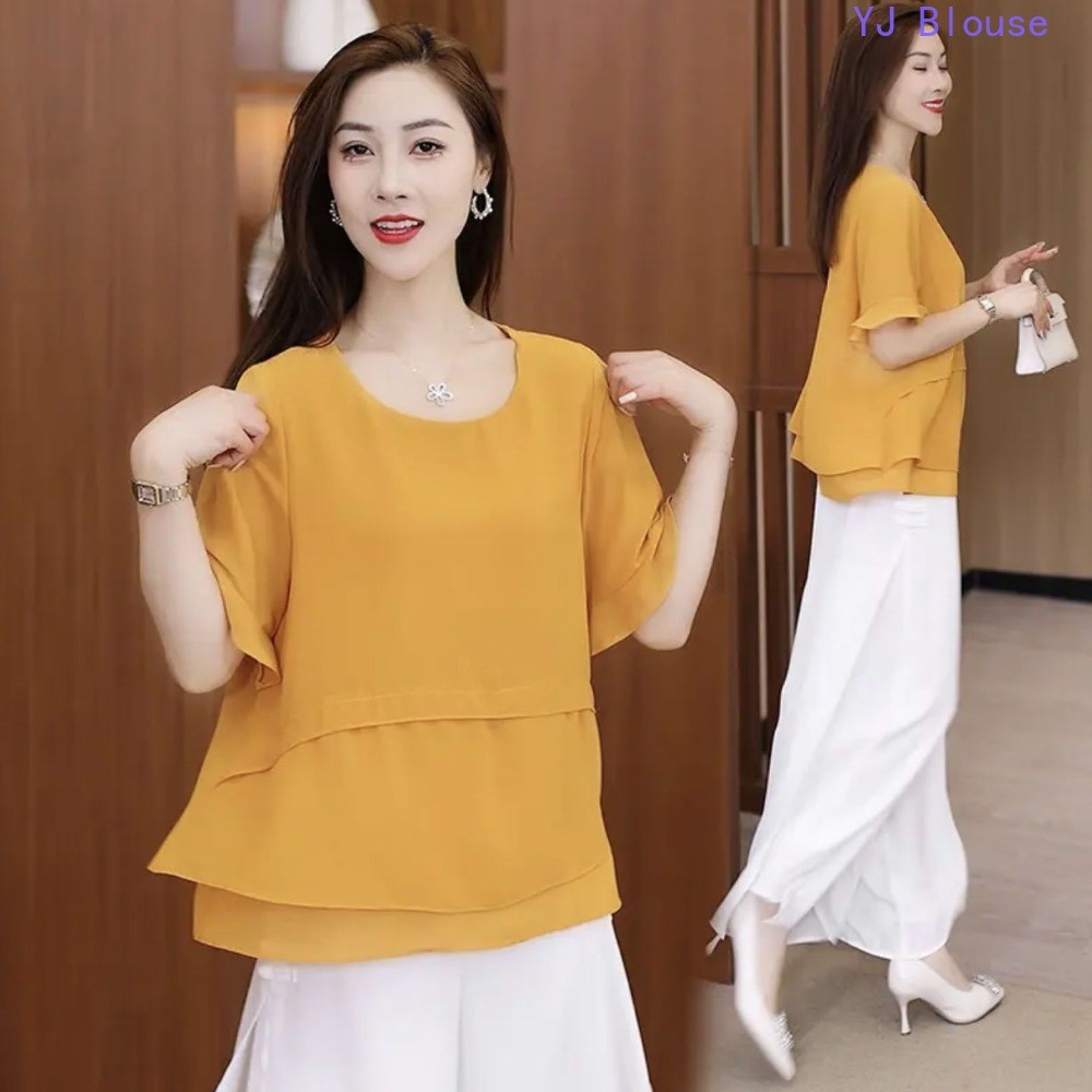 Chiffon Blouse for Women Plus Size Summer Korean Style Loose Fashion Shirt