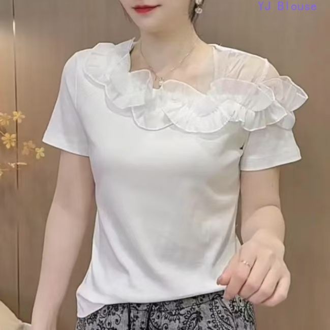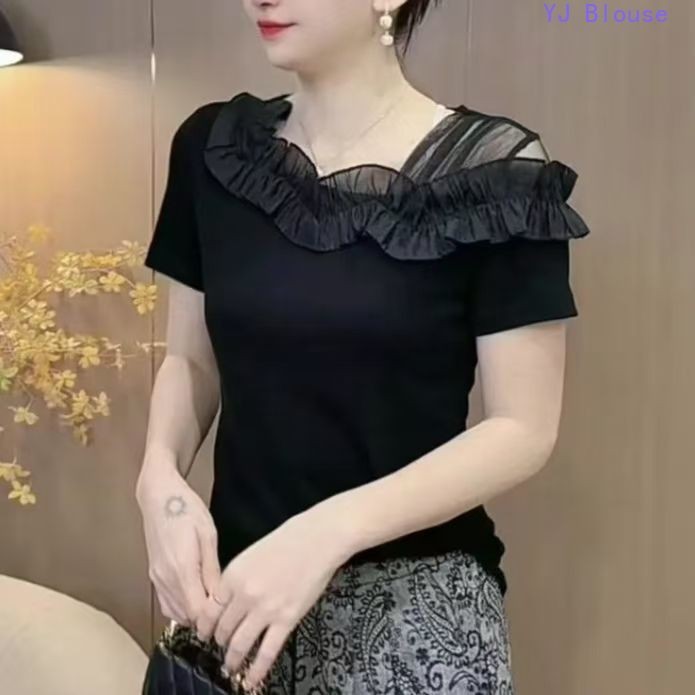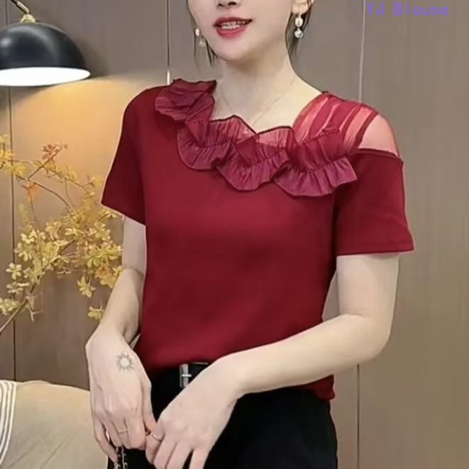 Striped Blosue Plus Size Women Korean Style Fashion Casual Off-shoulder Short-sleeve T-shirt