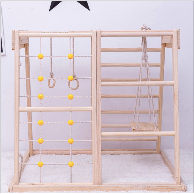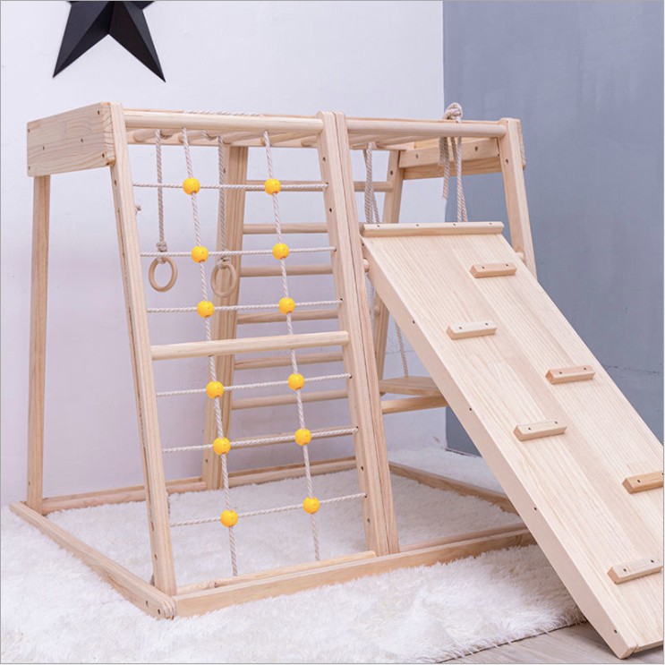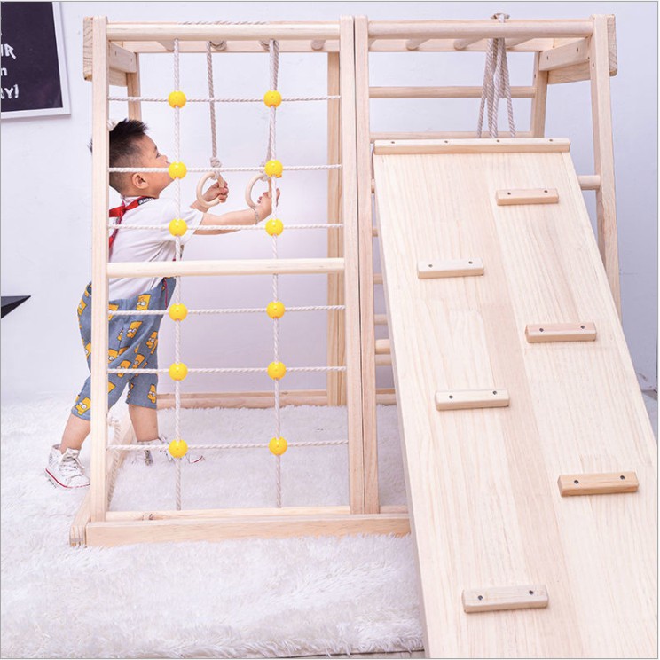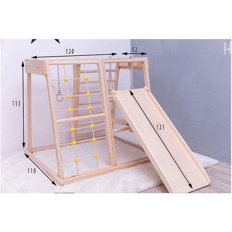 [Malaysia Ready Stock] Children Wooden Playground with Gym Climbing Frame + Slide + Swing + Hammock for Indoor / Outdoor