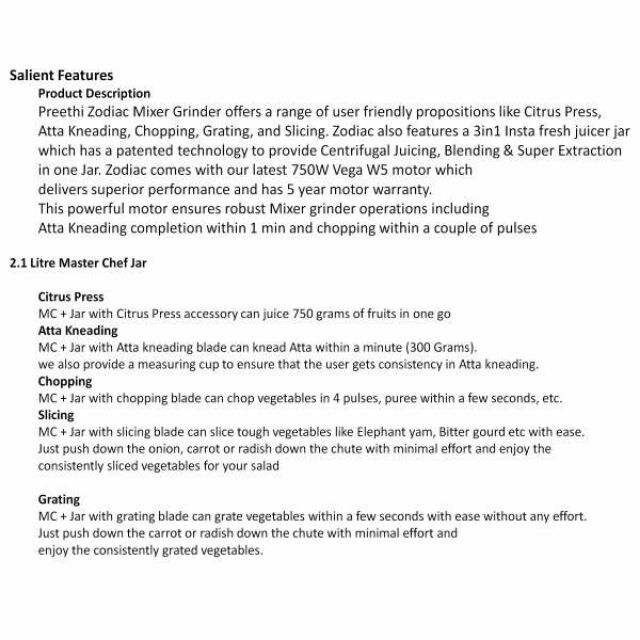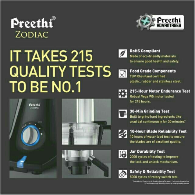Preethi Zodiac 750 Watts Mixer Grinder 5 in 1+Free Adapter (1 Year Motor Warranty)