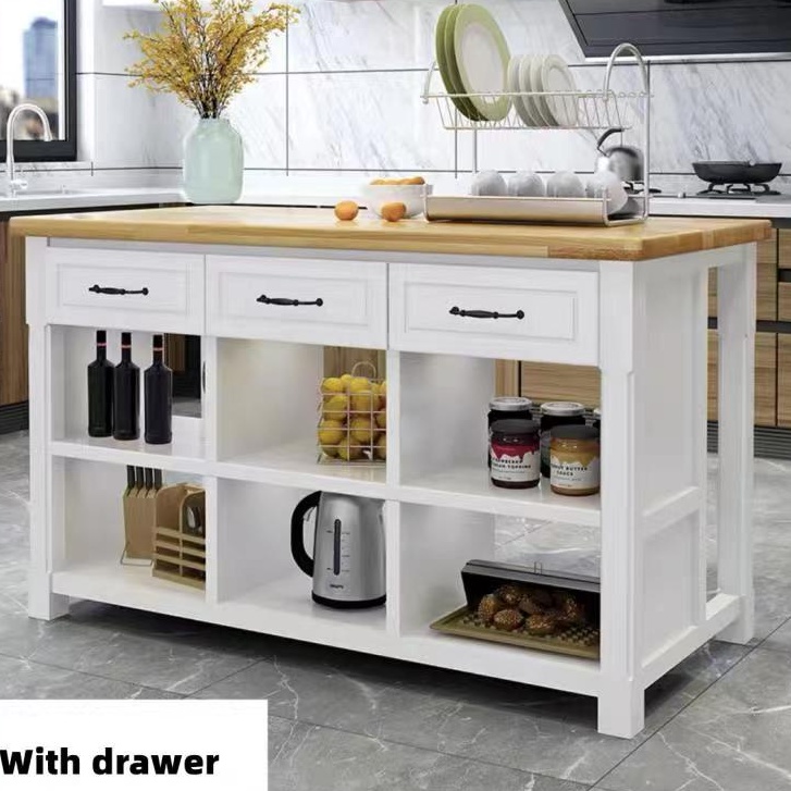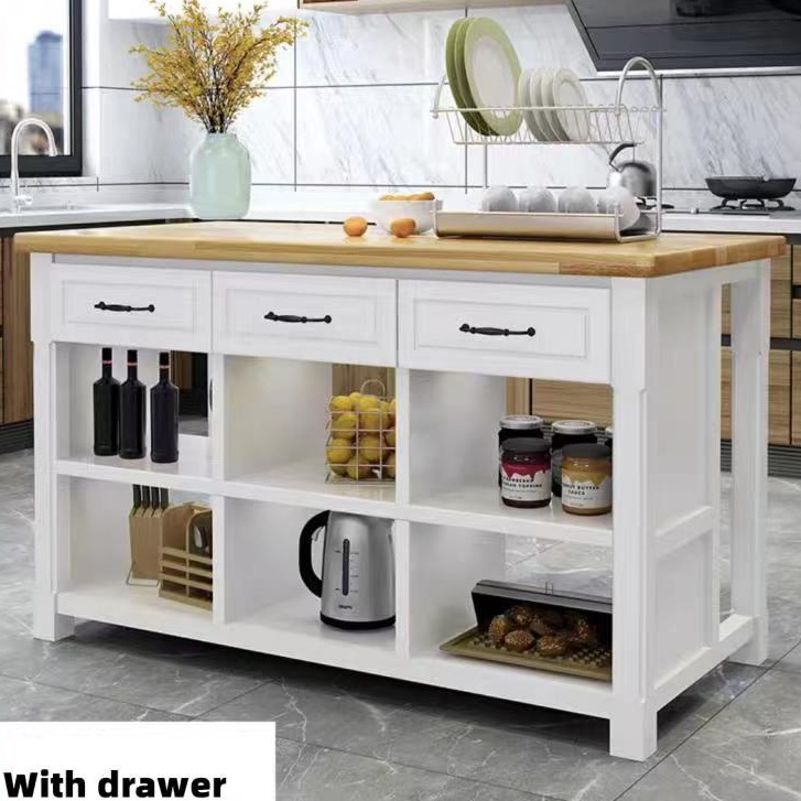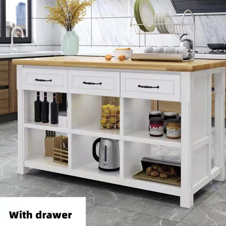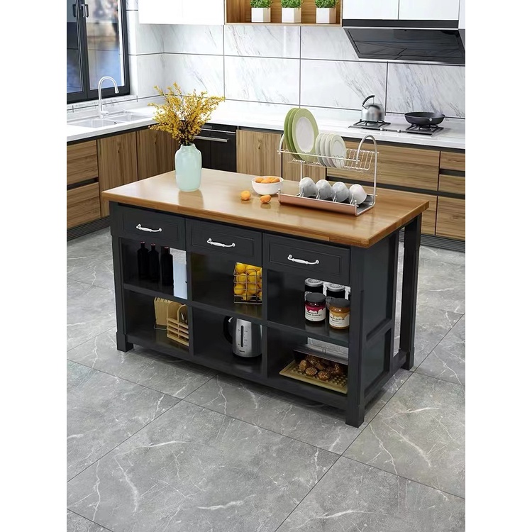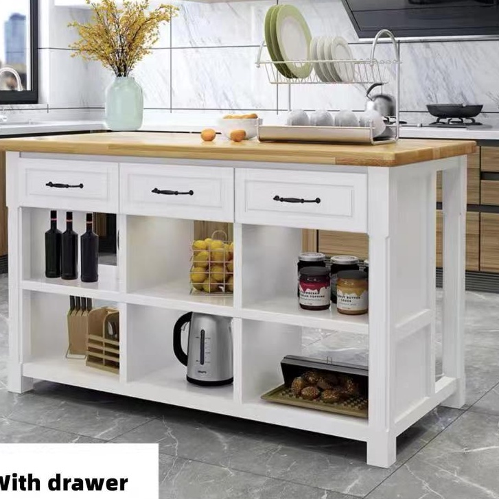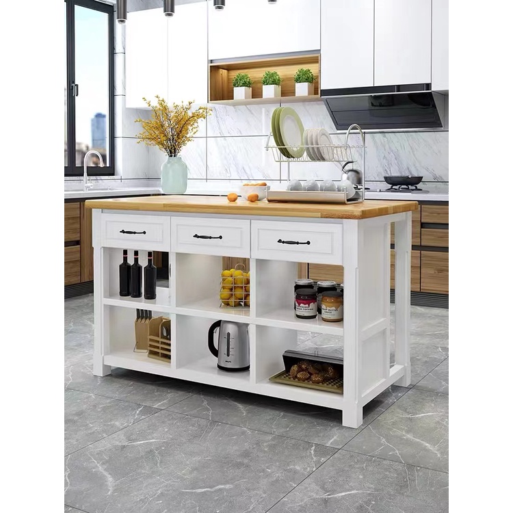 Kitchen island table, cooking table, solid wood console, baking table, side cabinet, multi-function home bar table