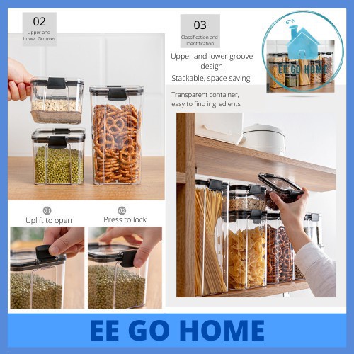 1800ML Airtight Food Storage Container Plastic Kitchen Multigrain Square Transparent Sealed Can