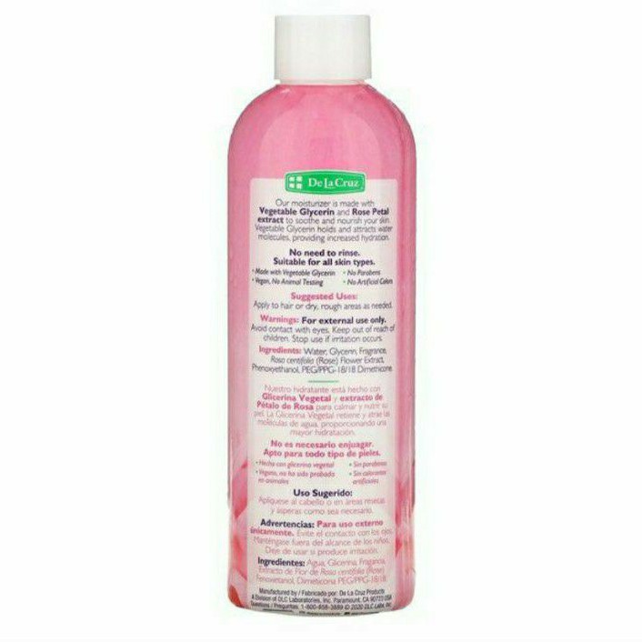 De La Cruz Glycerin & Rose Water, Skin & Hair Moisturizer, (236 ml)