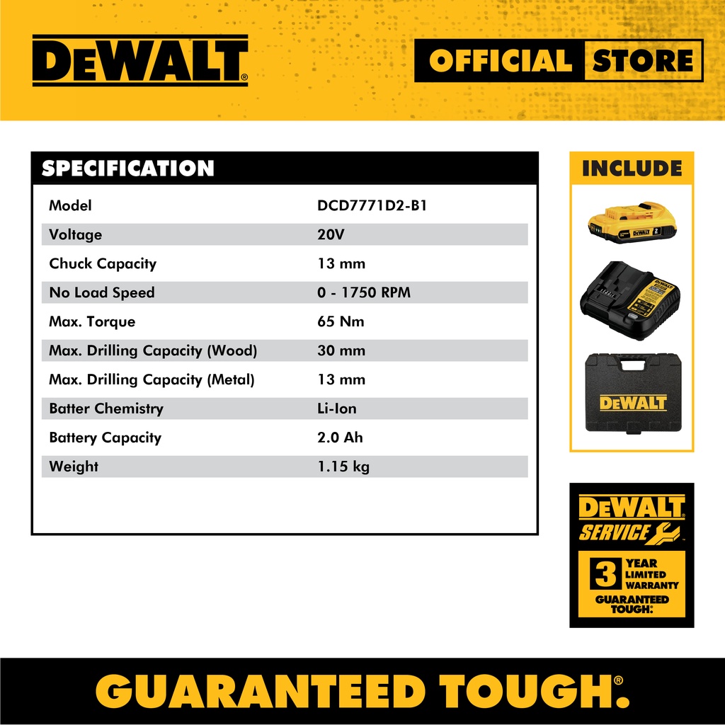 DEWALT DCD7771D2-B1 Dreamliner Brushless Drill Driver 20V (Pemandu Gerudi Tanpa Berus Dewalt Dreamliner)