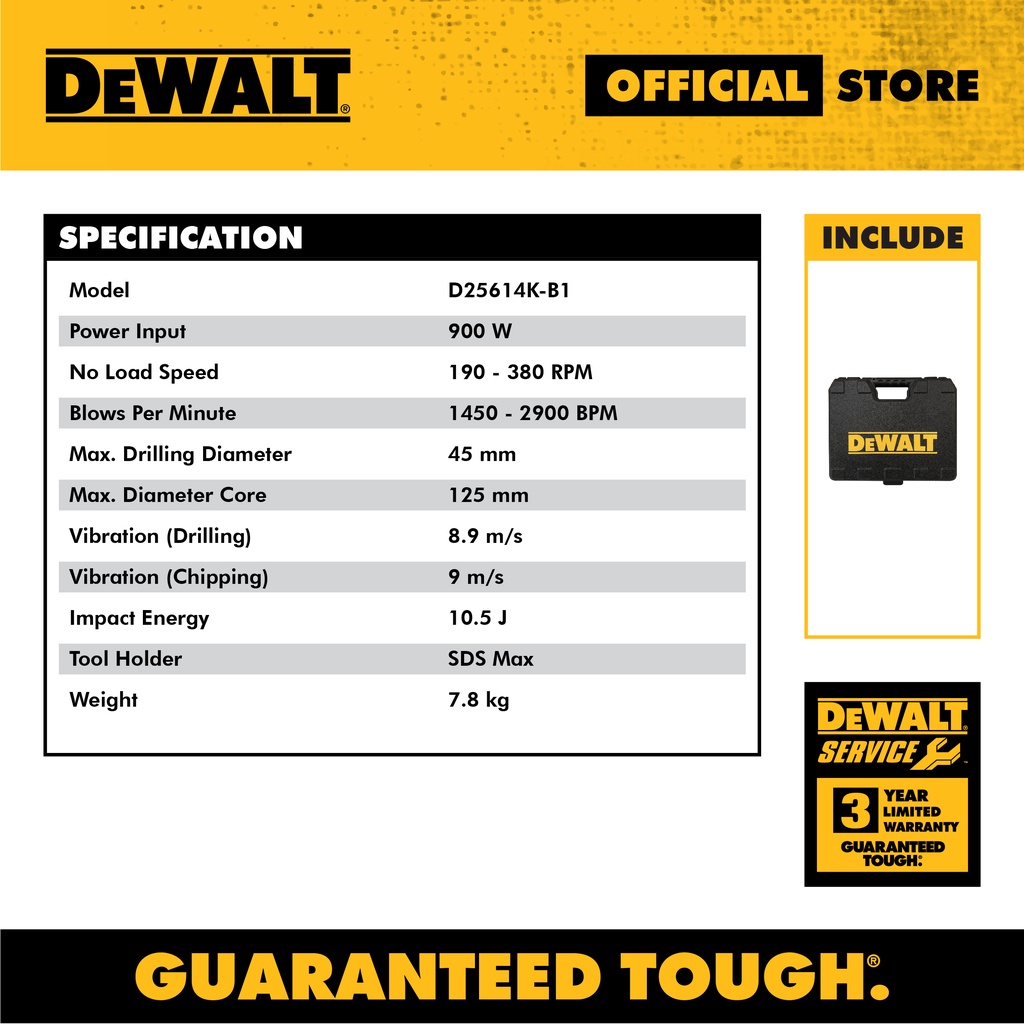 DEWALT D25614K-B1 45mm SDS Max Combination Hammer Kit (Kit Tukul Kombinasi SDS Max)