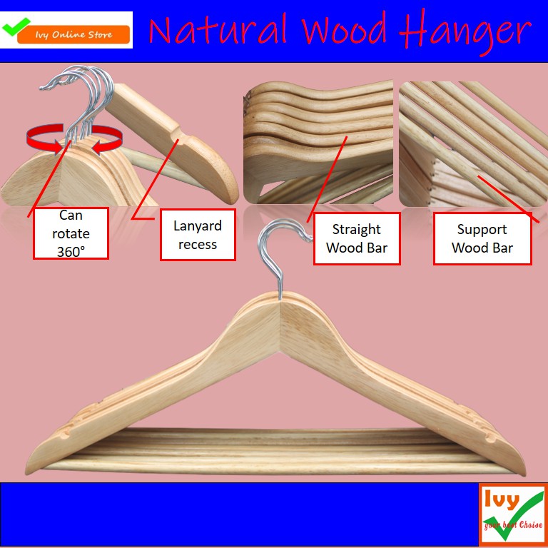 Natural Wood Hanger Solid Wood Clothes Hanger Adults Hanger Hanger Kayu