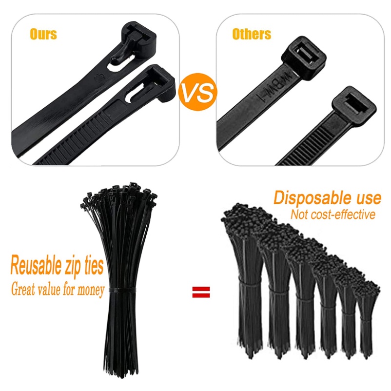 50pcs Releasable Reusable Zip Ties Heavy Duty Zip Tie Thick Black Cable Ties Reusable Tensile Strength Nylon Cable Wire Ties for Multi-Purpose Use Indoor Outdoor Plastic Tie Wire