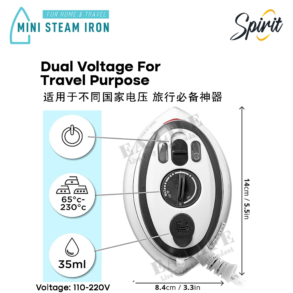 💨SPIRIT Mini Portable Iron Steam Iron Travel 迷你蒸汽烫斗 110-240V Travel Use 旅行必备 旅行神器